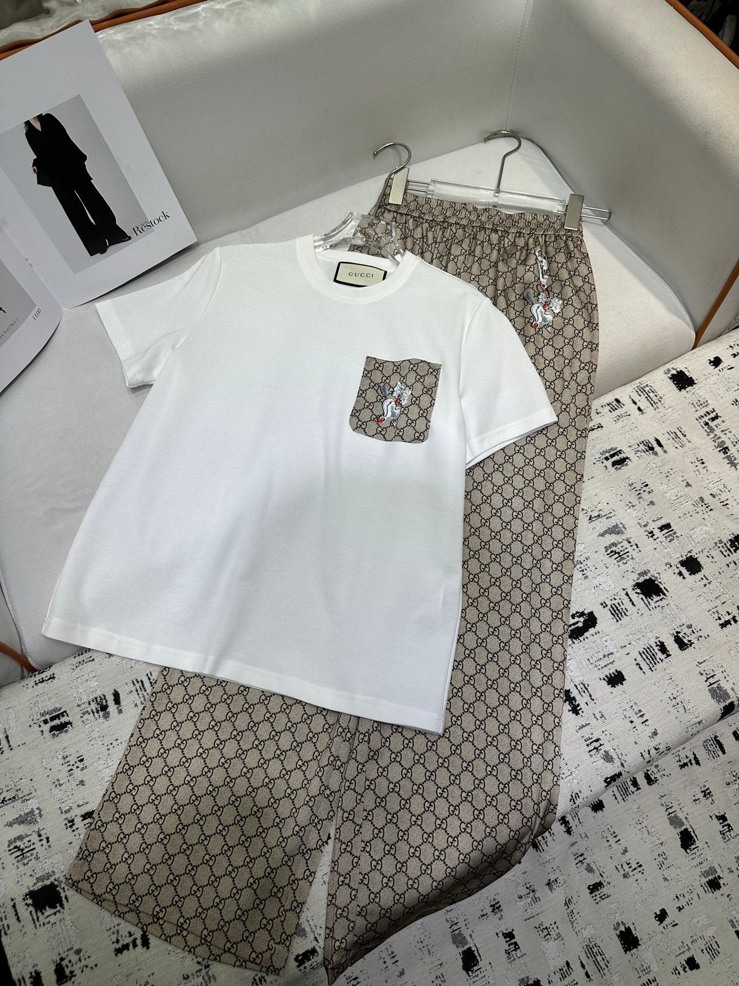 Gucci 2025 Pattern Set White Brown Polyester Fiber