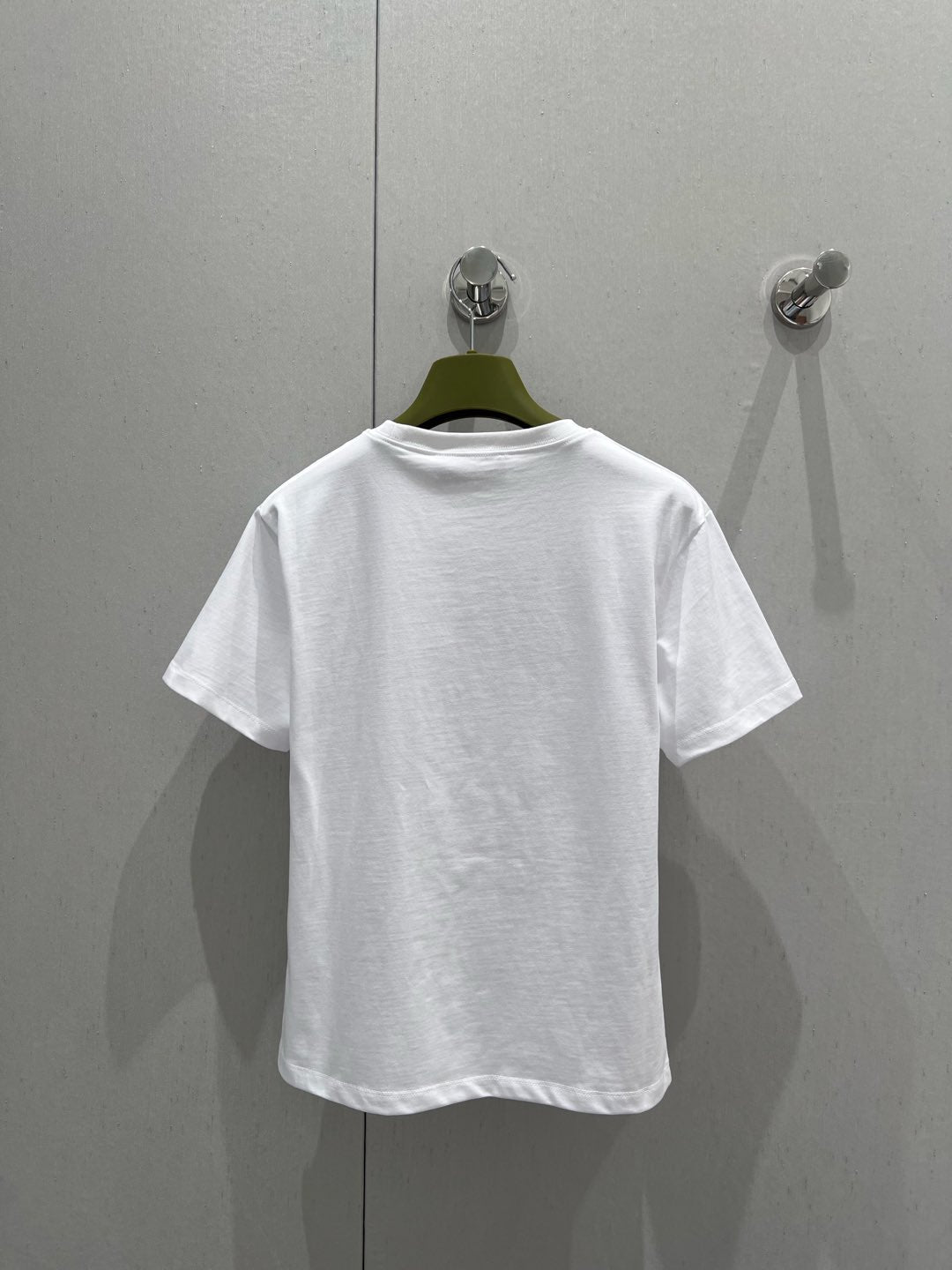 Gucci 2025 Print Short Sleeve T-shirt White Green Red Cotton