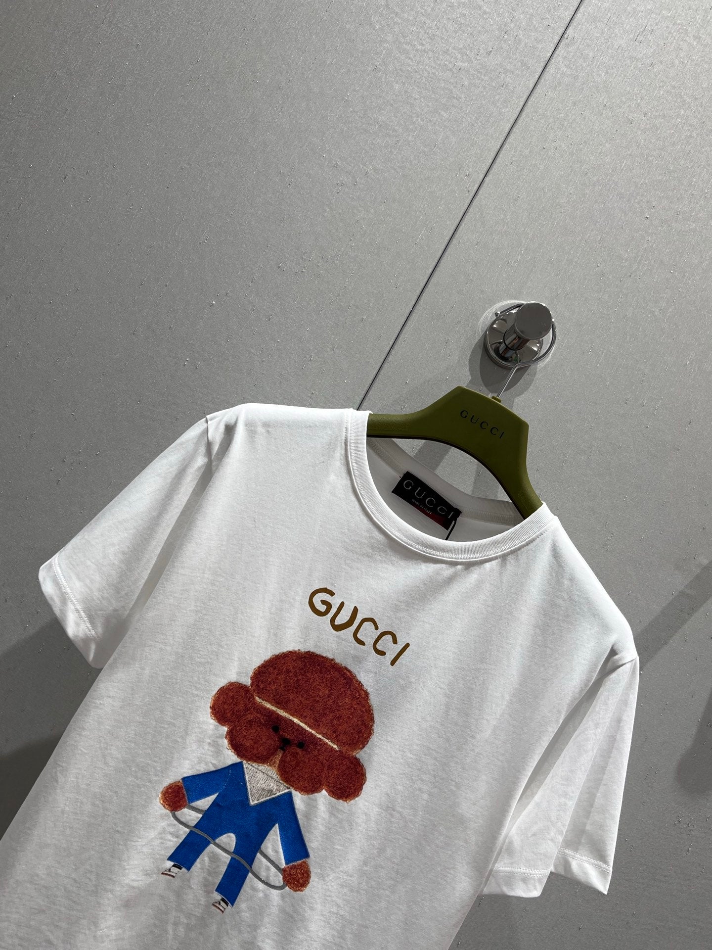 Gucci 25 Cartoon Fun Teddy Print Short-sleeved T-shirt White Cotton 215692