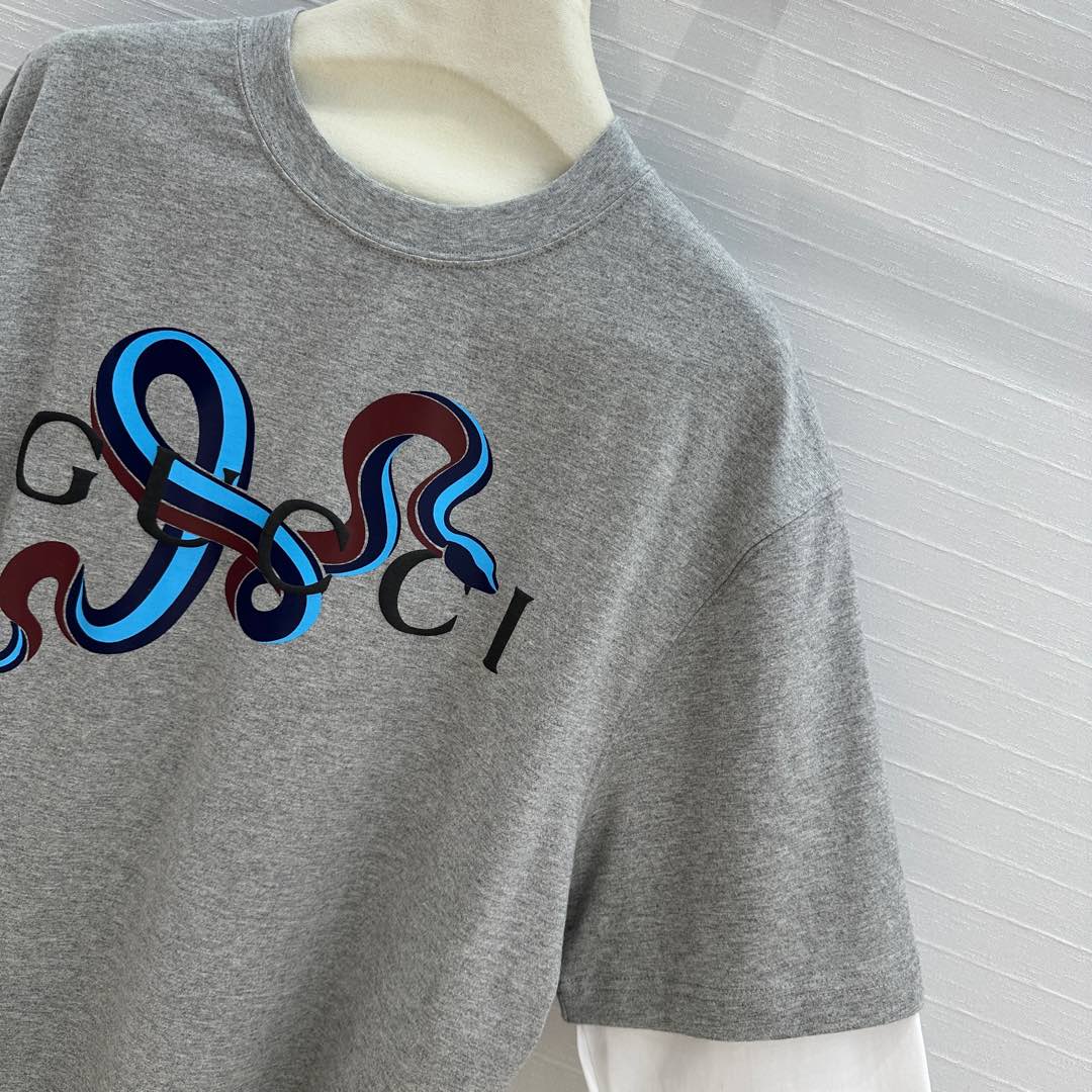 Gucci 25 Printed Long-sleeved T-shirt Gray Cotton