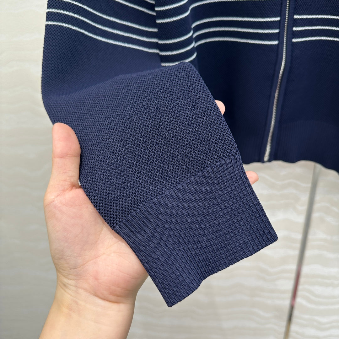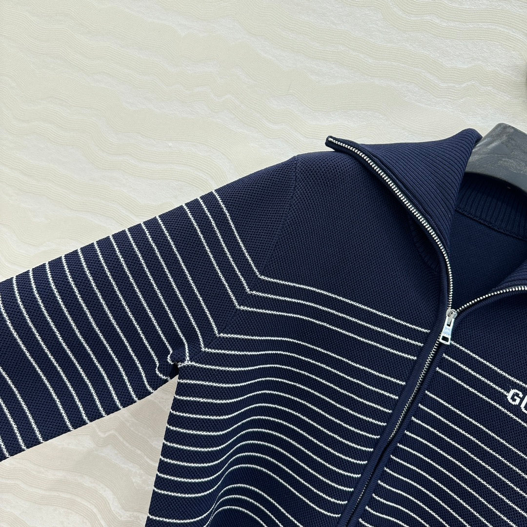 Gucci Knitted Zipper Jacket Dark Blue Viscose