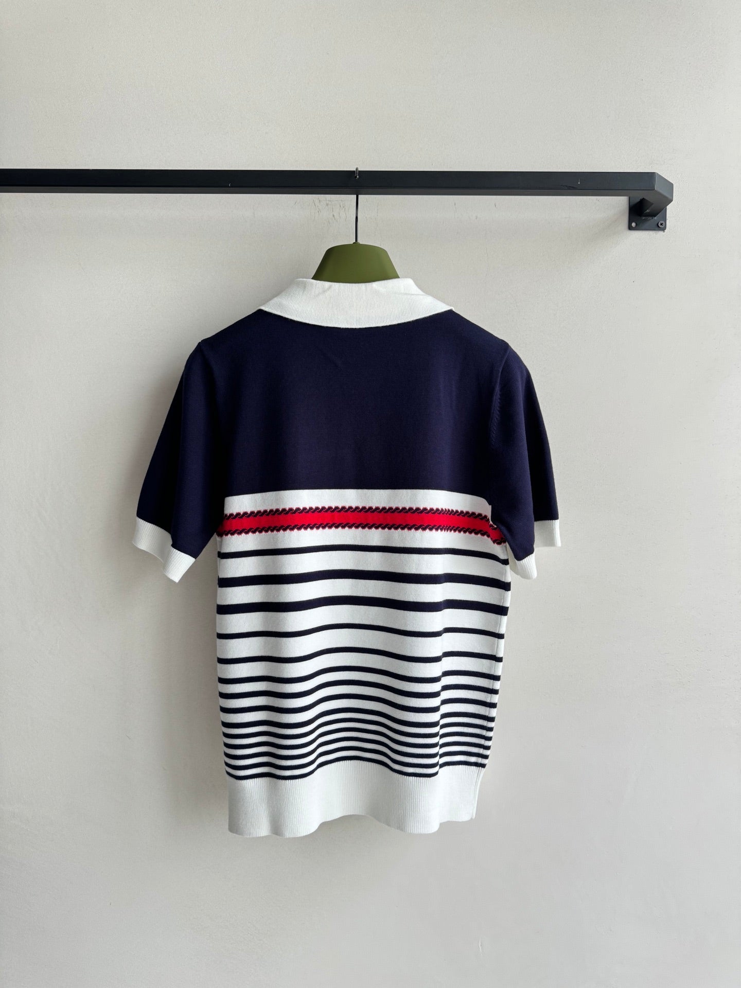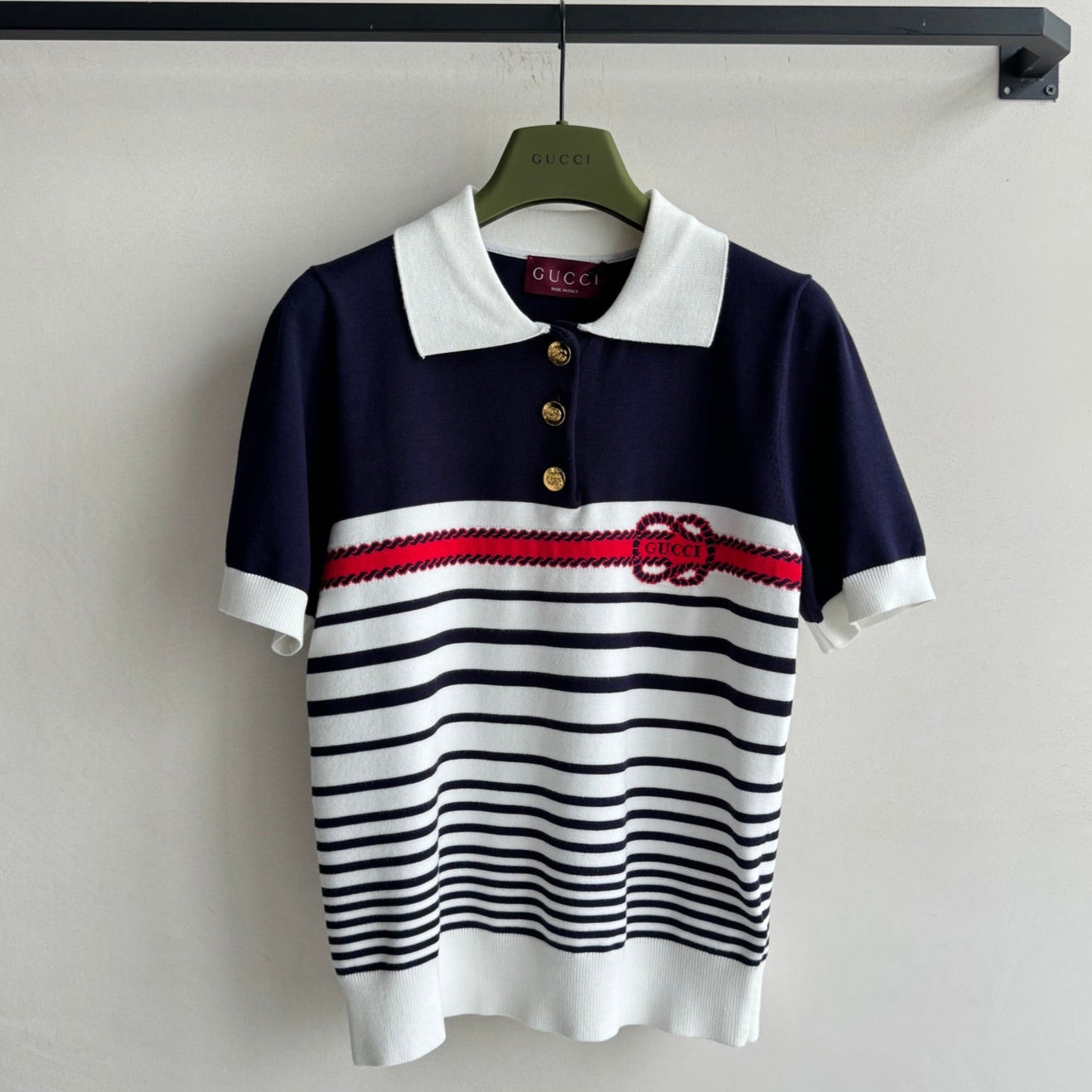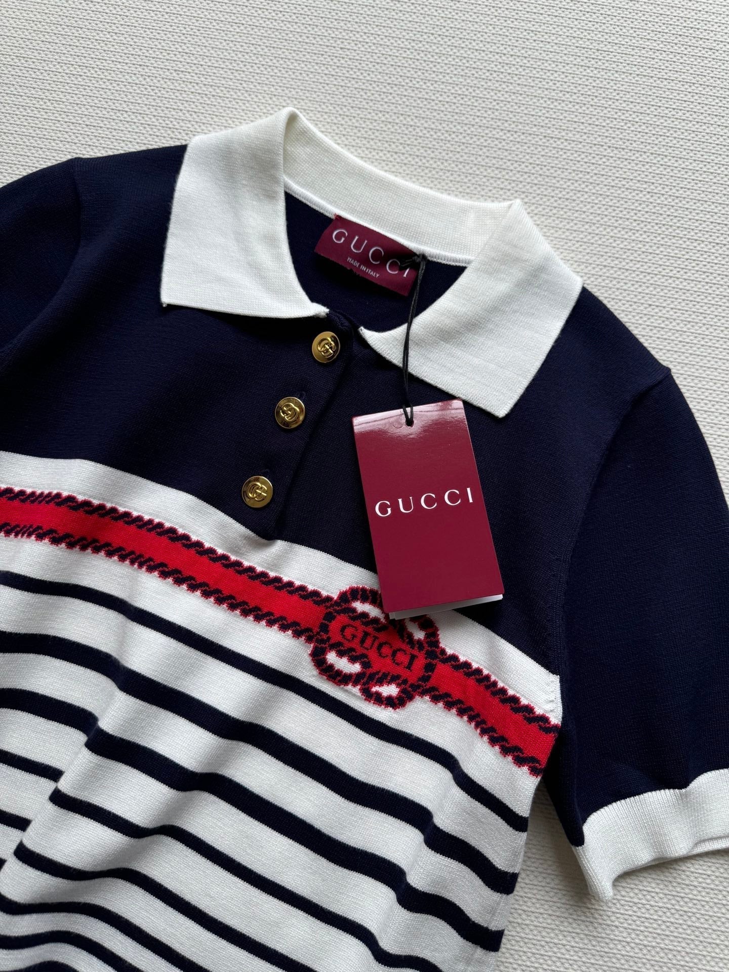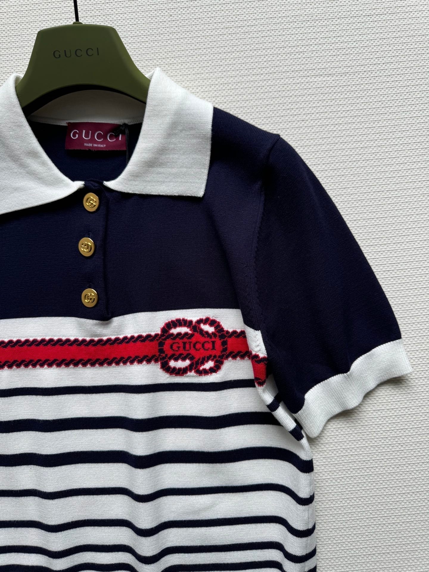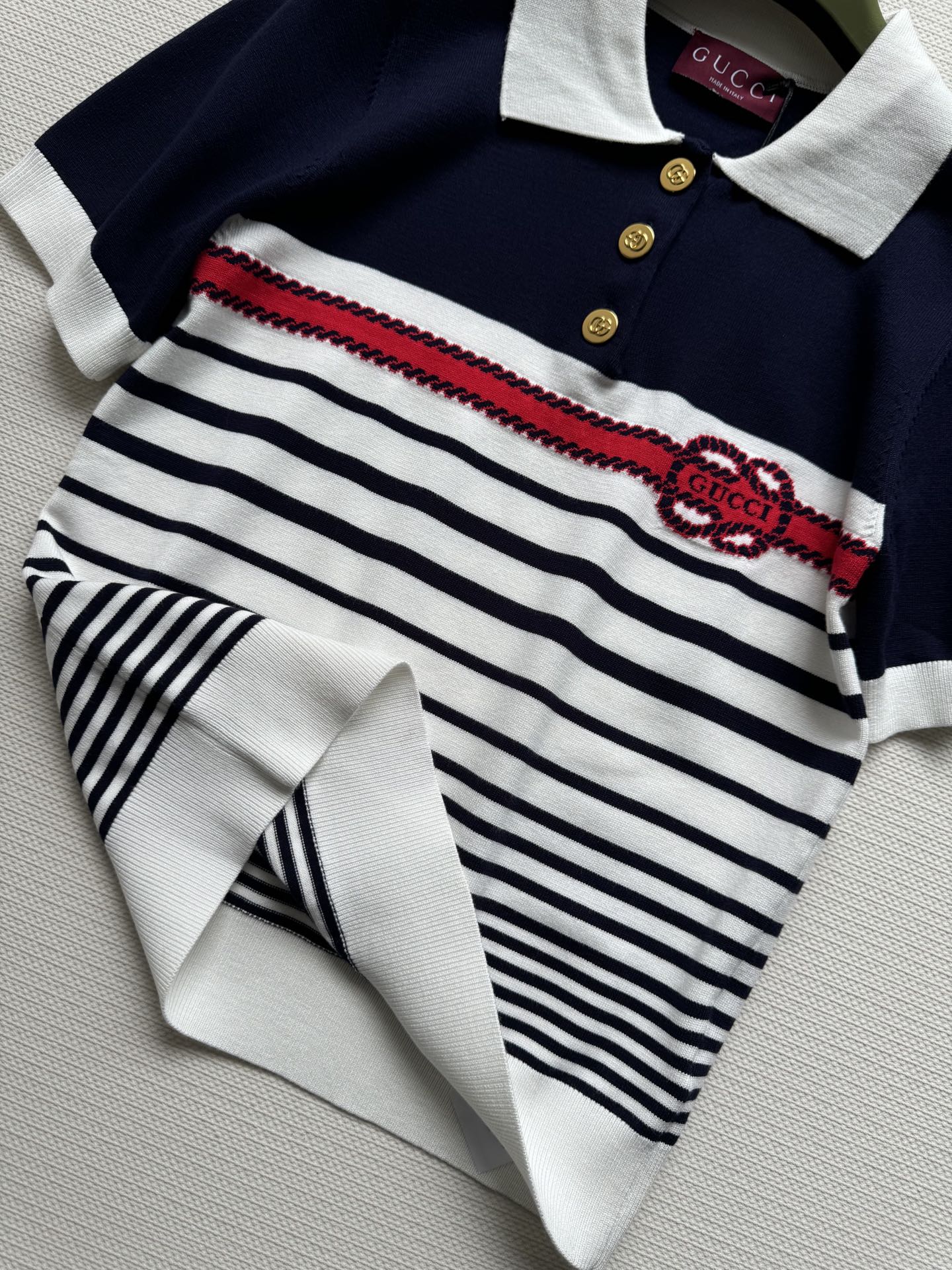 Gucci Striped Polo Knitted Top Dark Blue White Cotton