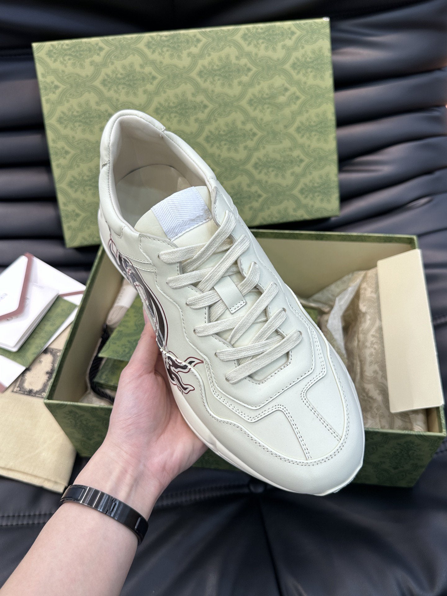 GG RHYTON LEATHER SNEAKERS WITH BLACK LOGO