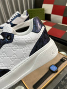GG SNEAKERS IN EMBOSSED BLUE WHITE COWHIDE LEATHER