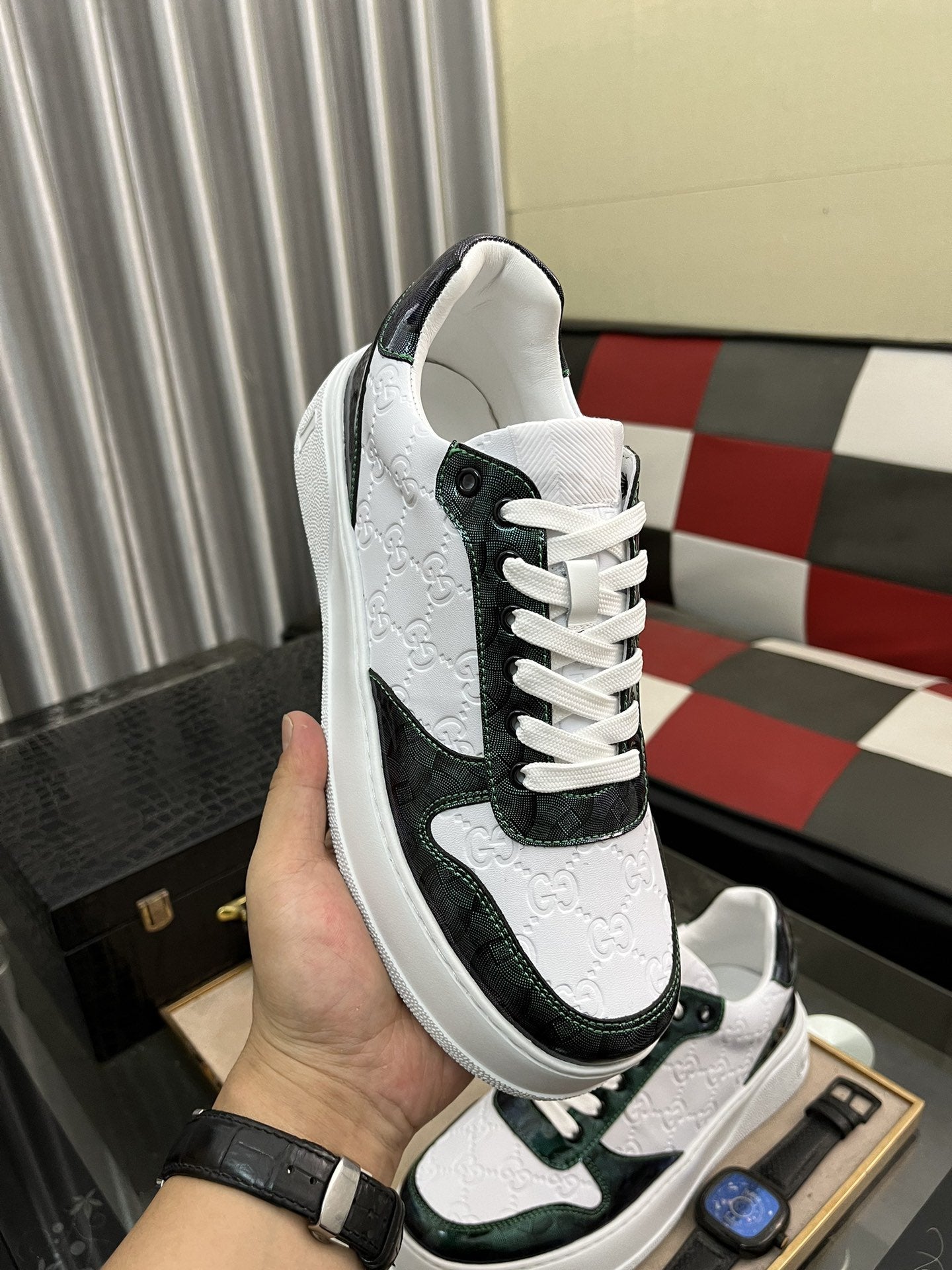 GG SNEAKERS IN EMBOSSED GREEN WHITE COWHIDE LEATHER