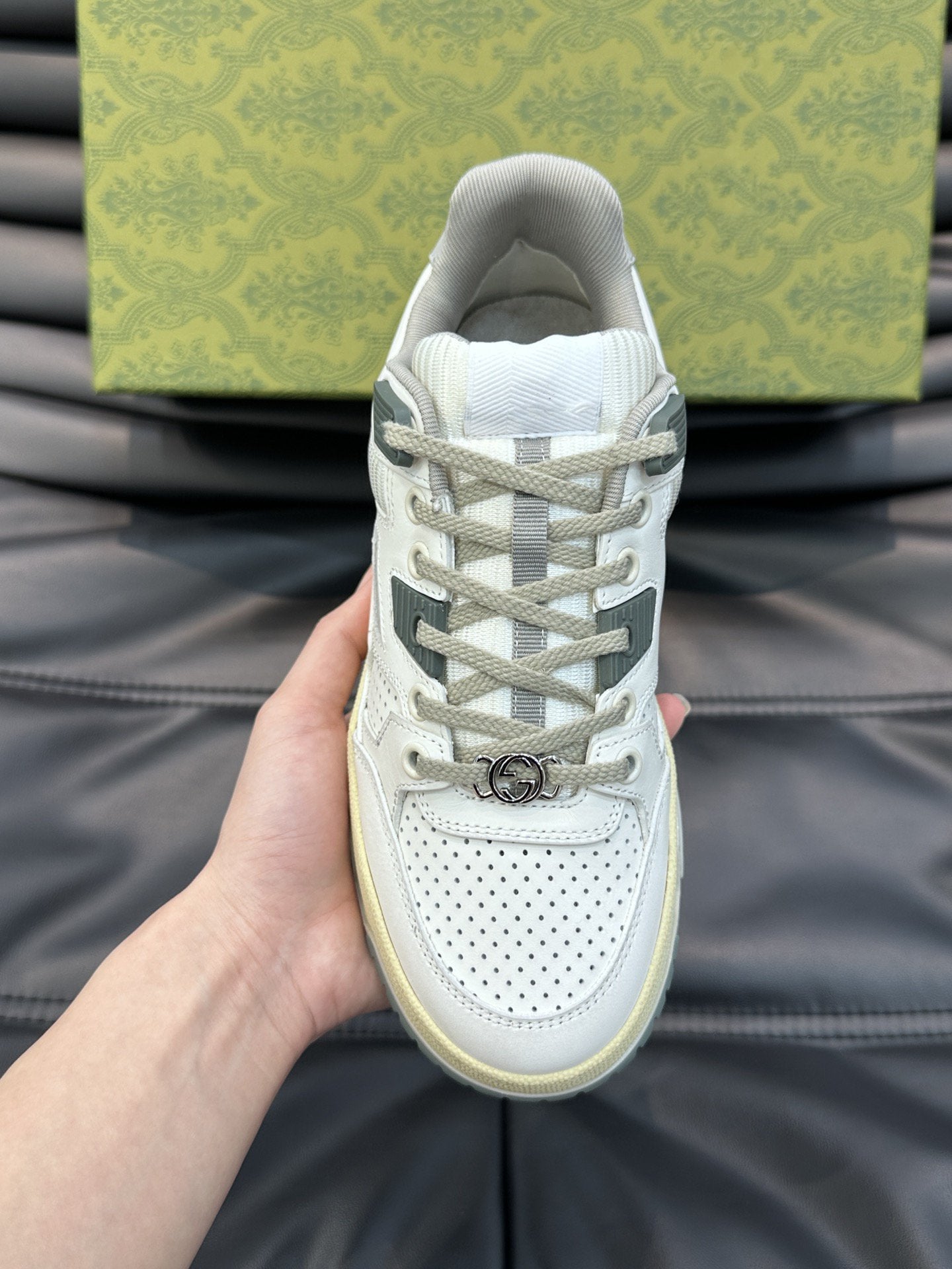 • Upper: The skillful integration of brand logo details such as the Double G accessory and the interlocking G letters is a subtle nod to the brand's design heritage.