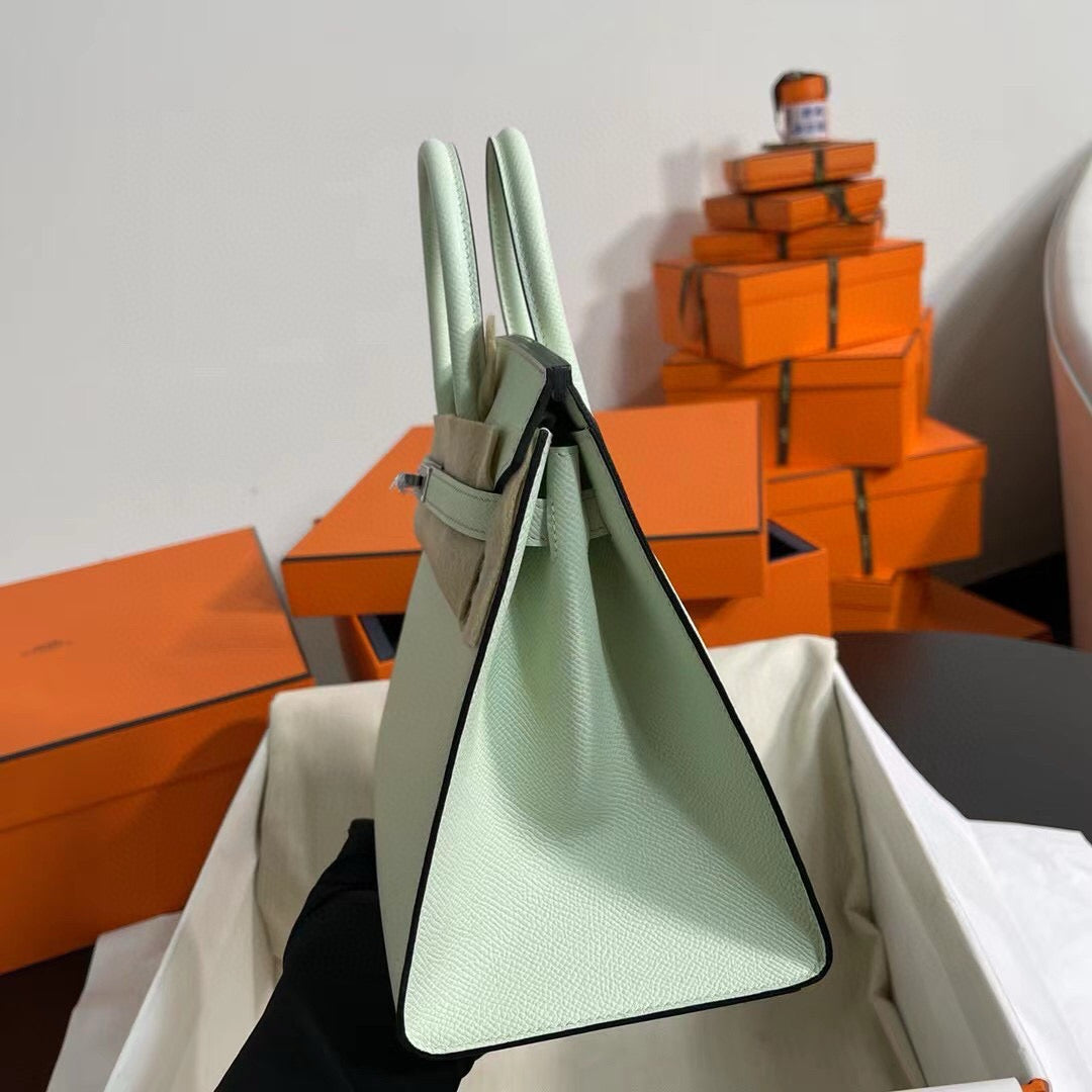 HM BIRKIN 25CM VERT FIZZ EPSOM LEATHER SILVER HARDWARE