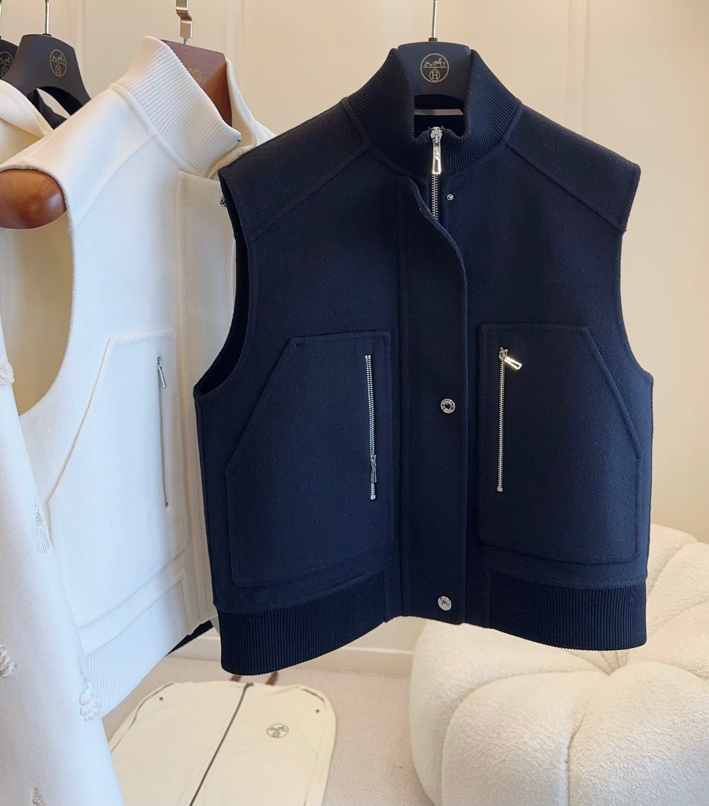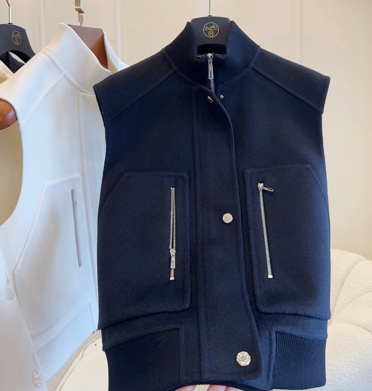 - Color: White, Navy Blue