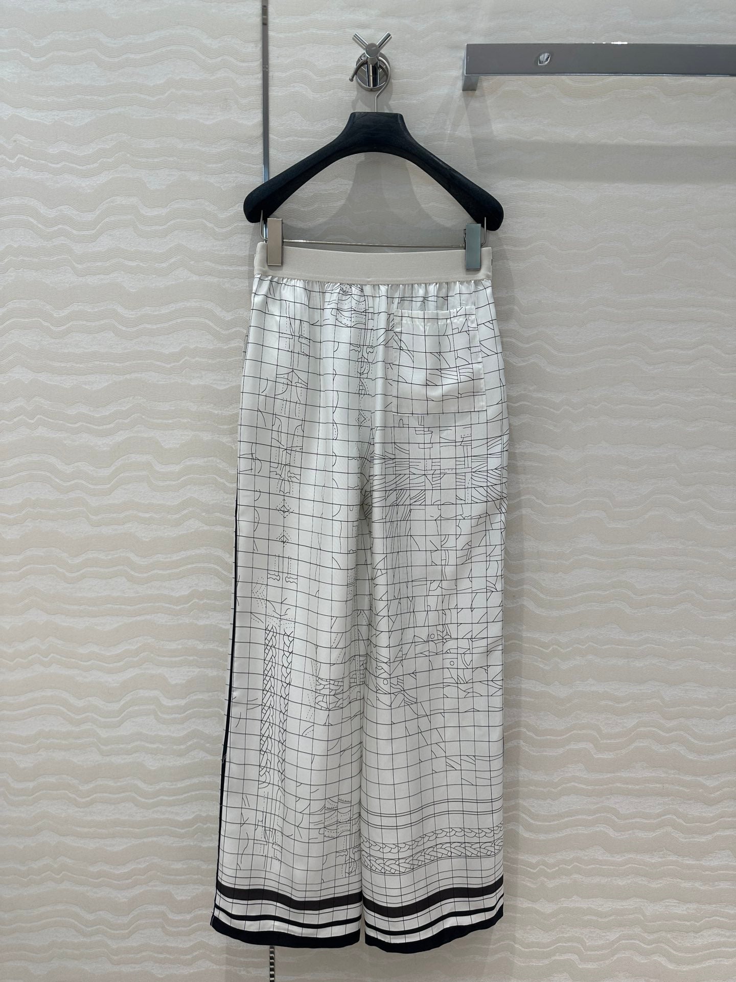 Hm 25 Coaching Deja Vu Wide-leg Straight Pants White Black Silk