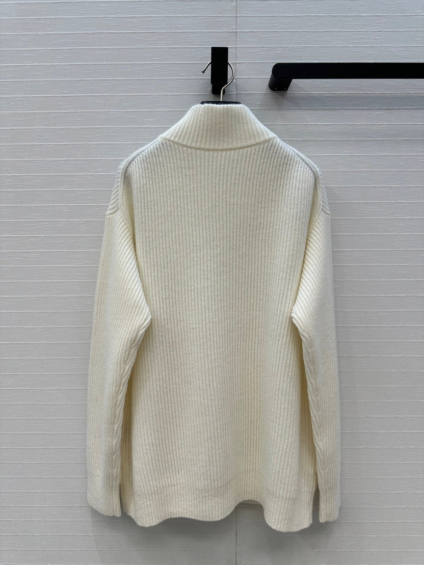 HM 25S Zipped Jacket H Leather Pockets in White Cashmere