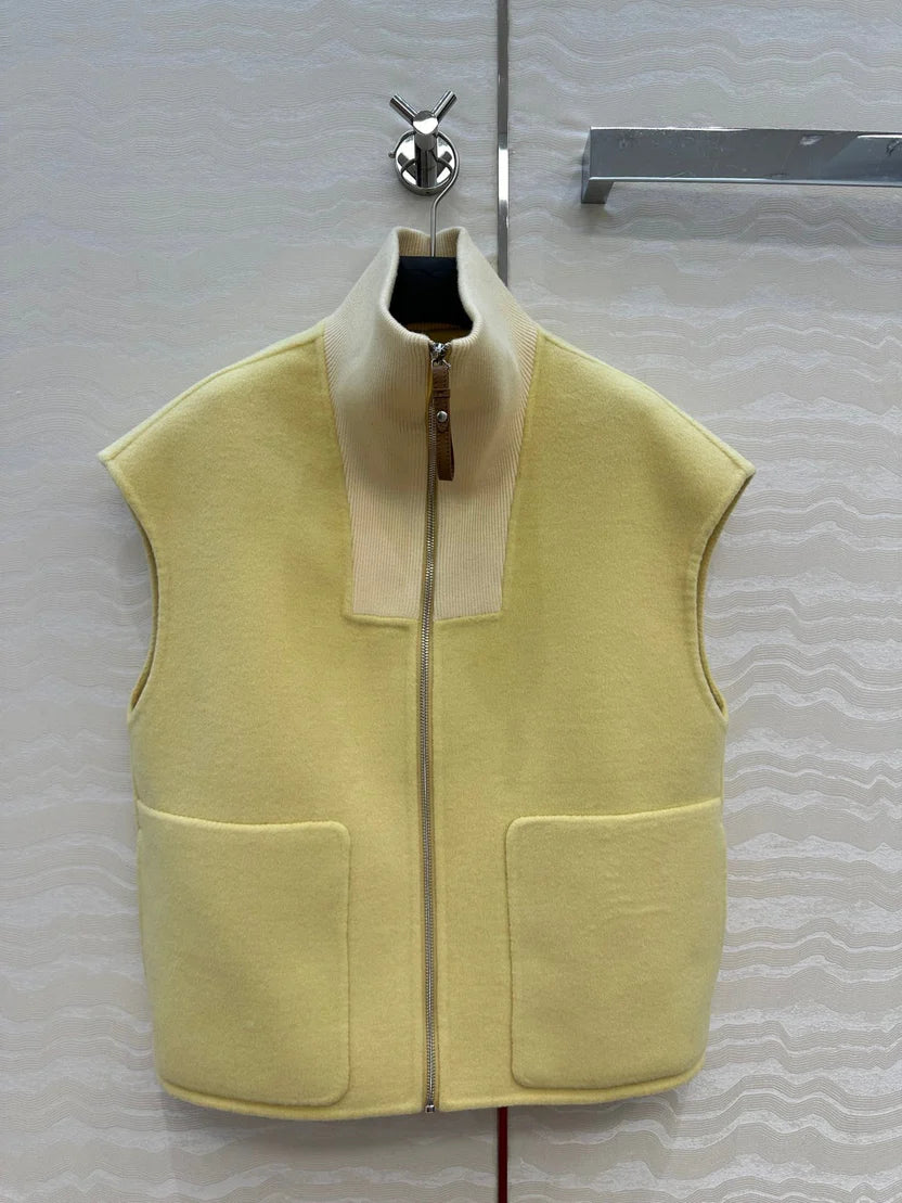 HM 25S Zipped Vest in Light Yellow Wool and Cashmere