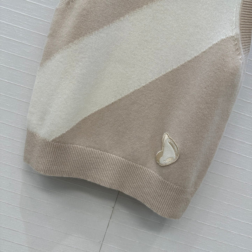 HM Embroidered Logo Vest in Beige and White Cashmere