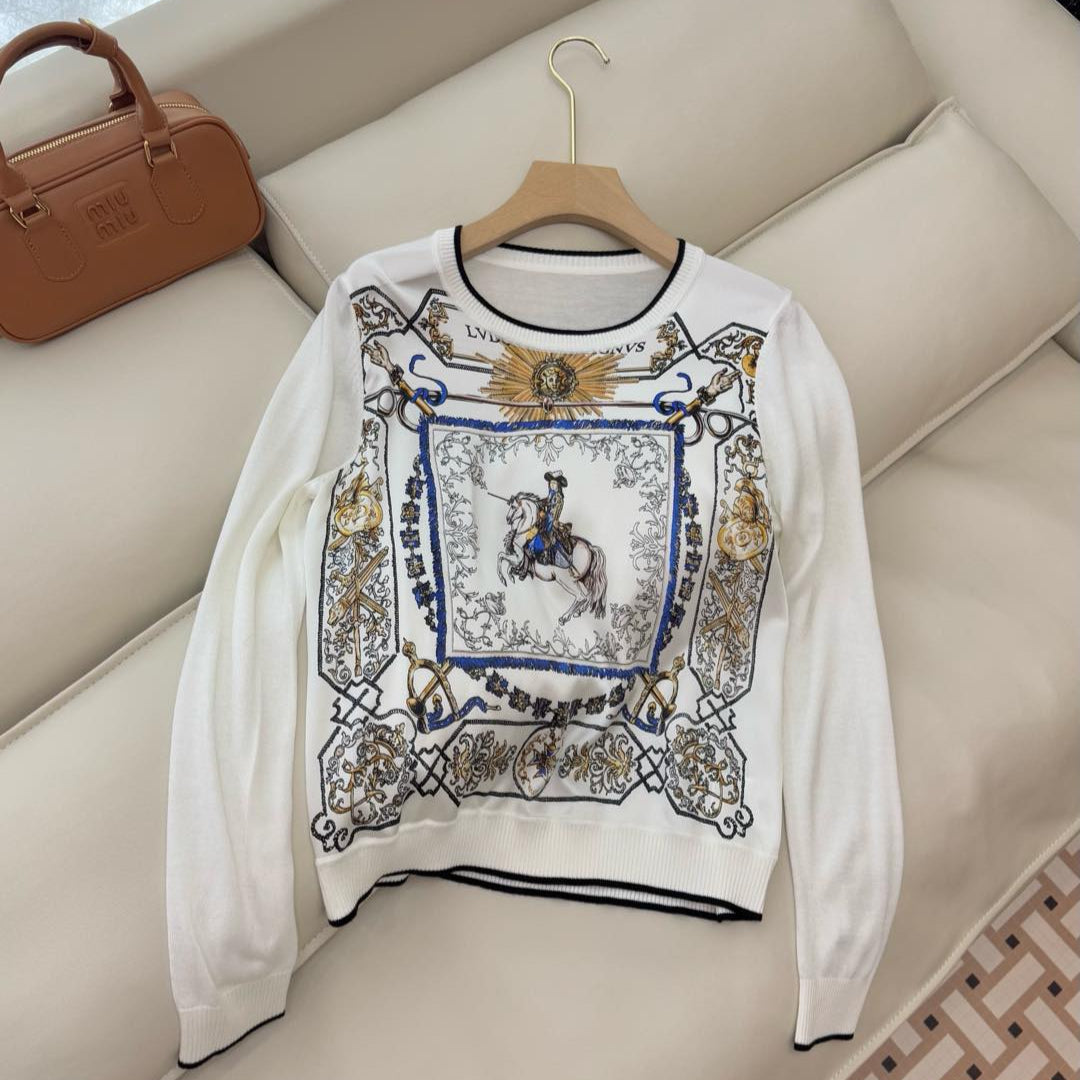 Hm Long Sleeve Knit Sweater White Silk Acrylic