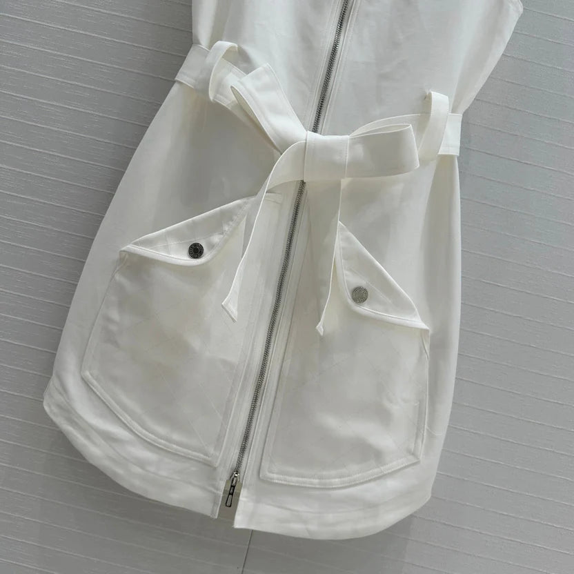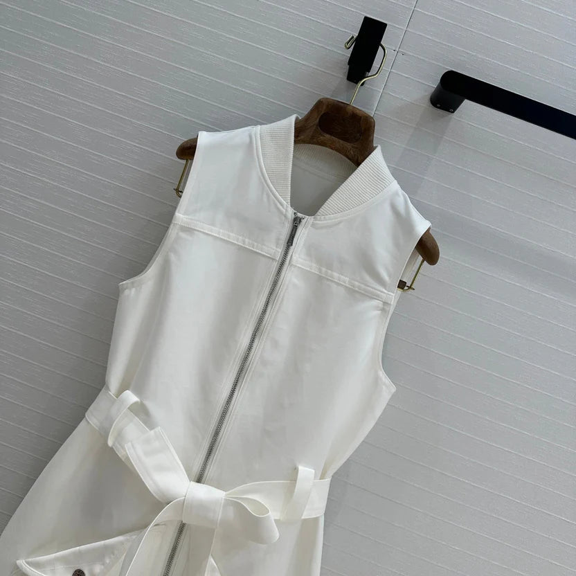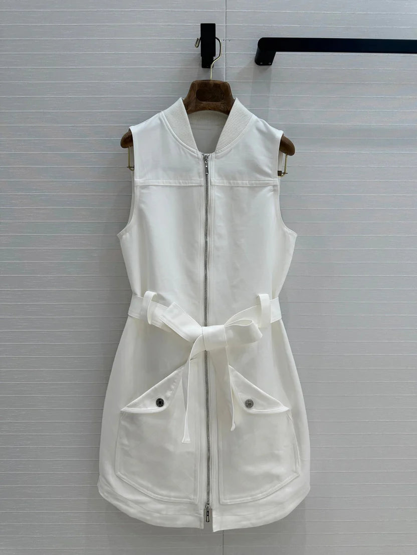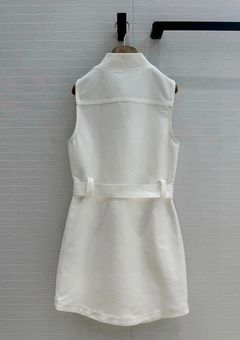 HM Majia Zipped Sleeveless Dress in White Cotton