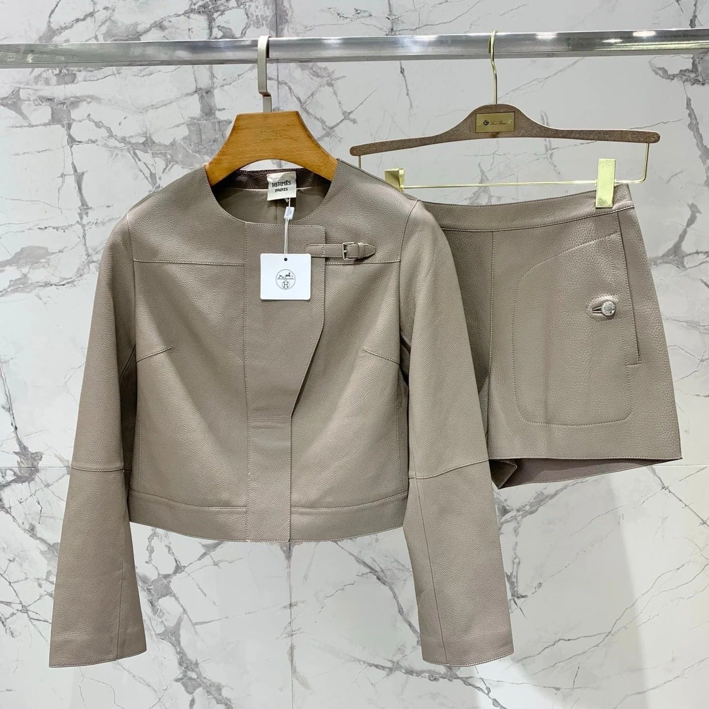 HERMES 25S LEATHER JACKET WITH LEATHER SHORTS