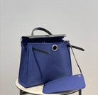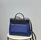 Herbag 31 Toile Blue Canvas Black Cowhide Leather