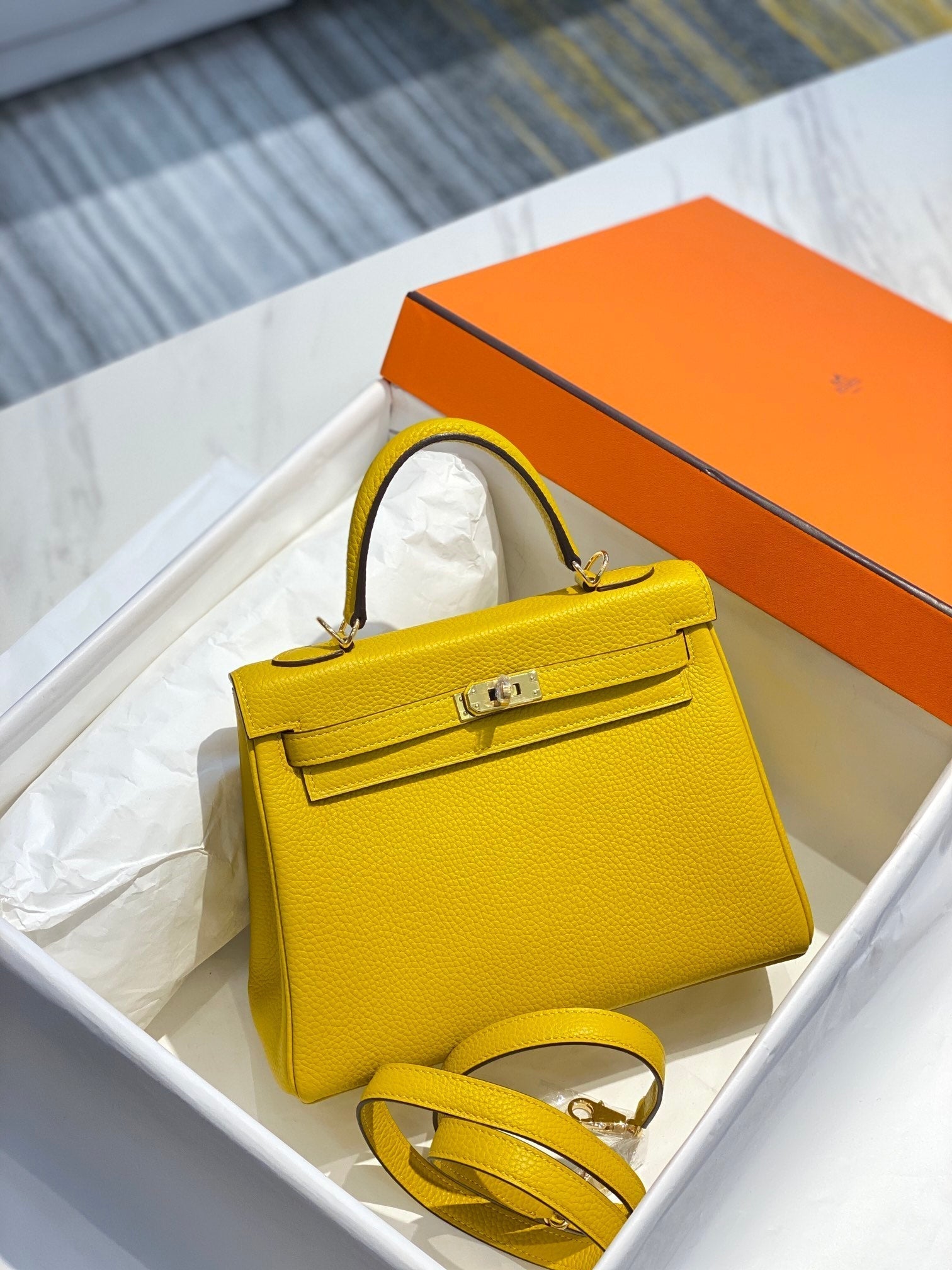 HM KELLY 25CM YELLOW TOGO GOLD HARDWARE
