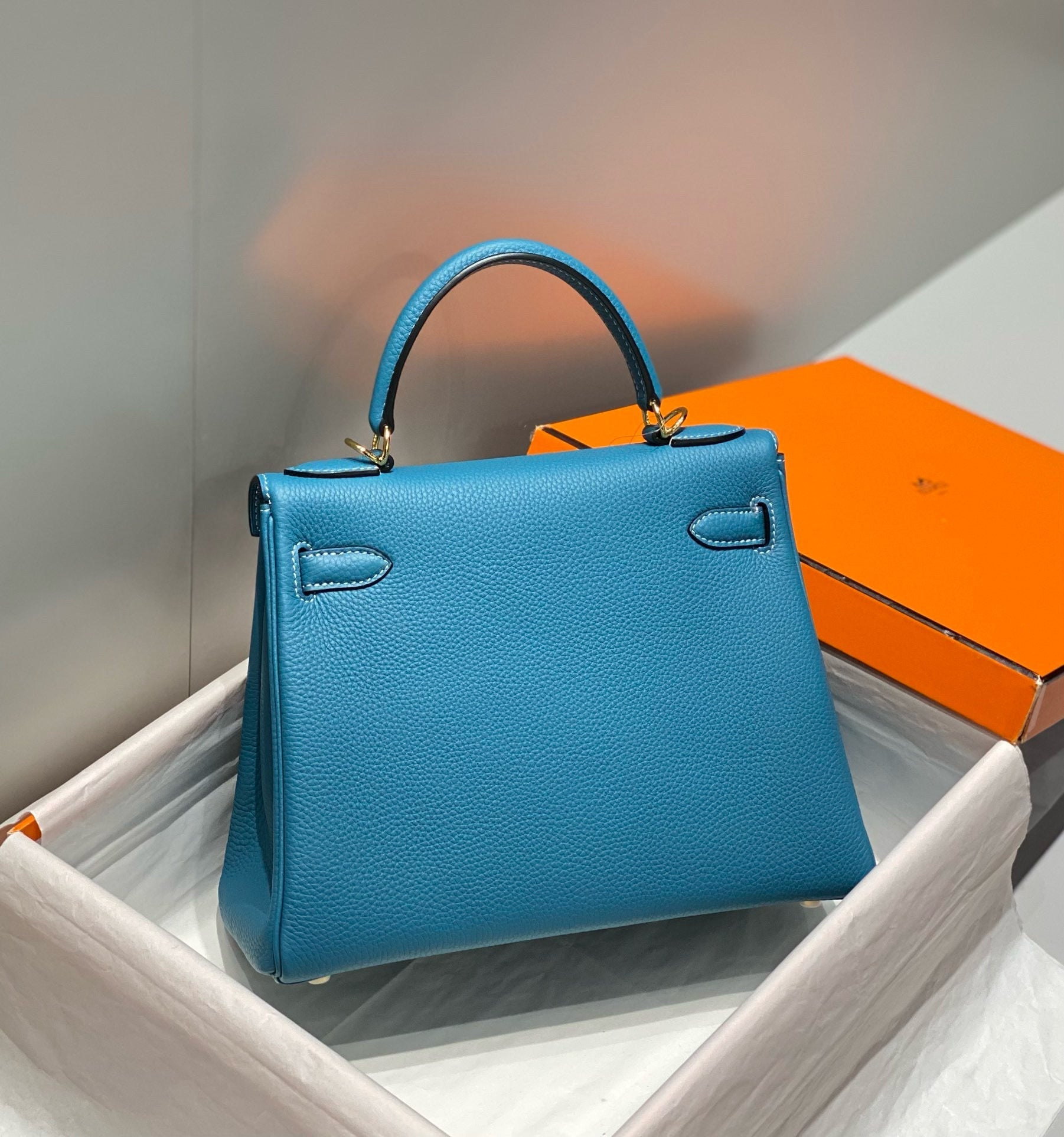 HM KELLY 25CM AGATE BLUE TOGO GOLD HARDWARE