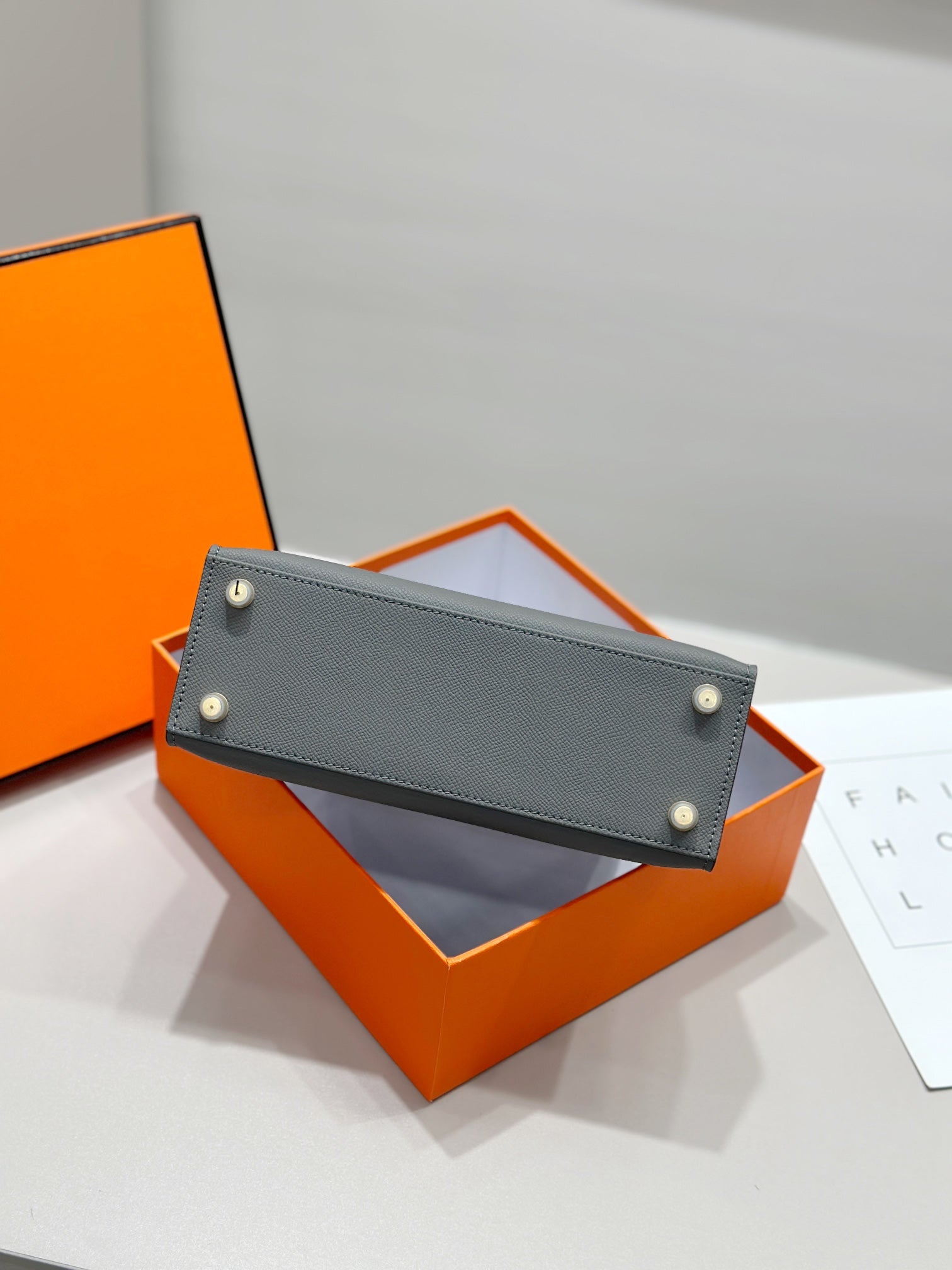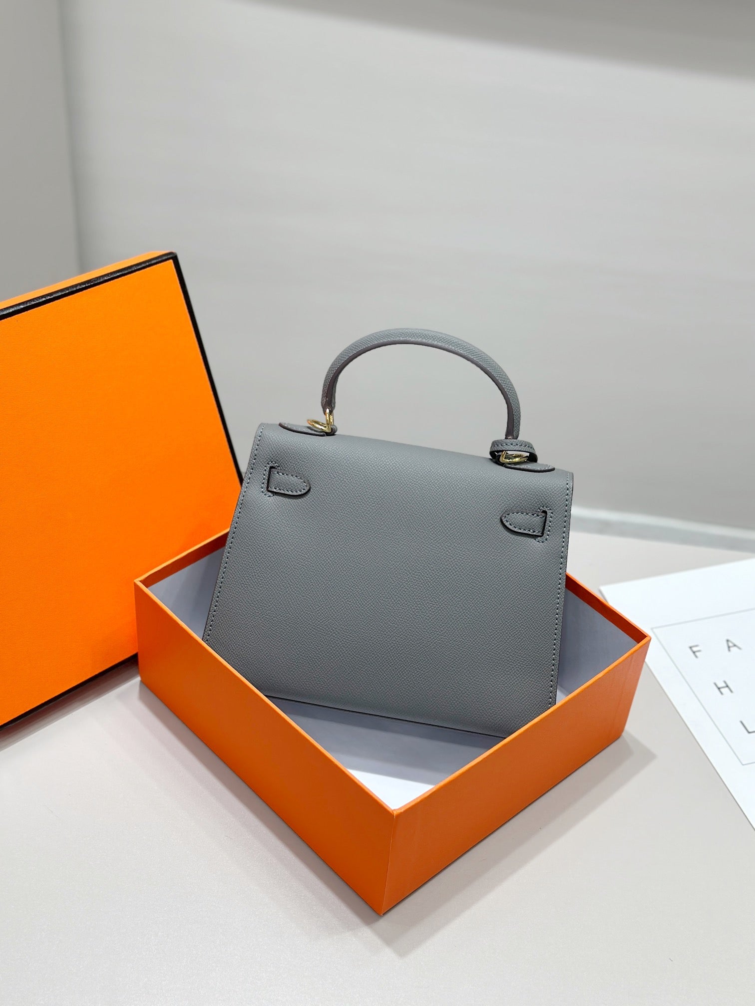HM KELLY 25CM GREY EPSOM LEATHER GOLD HARDWARE
