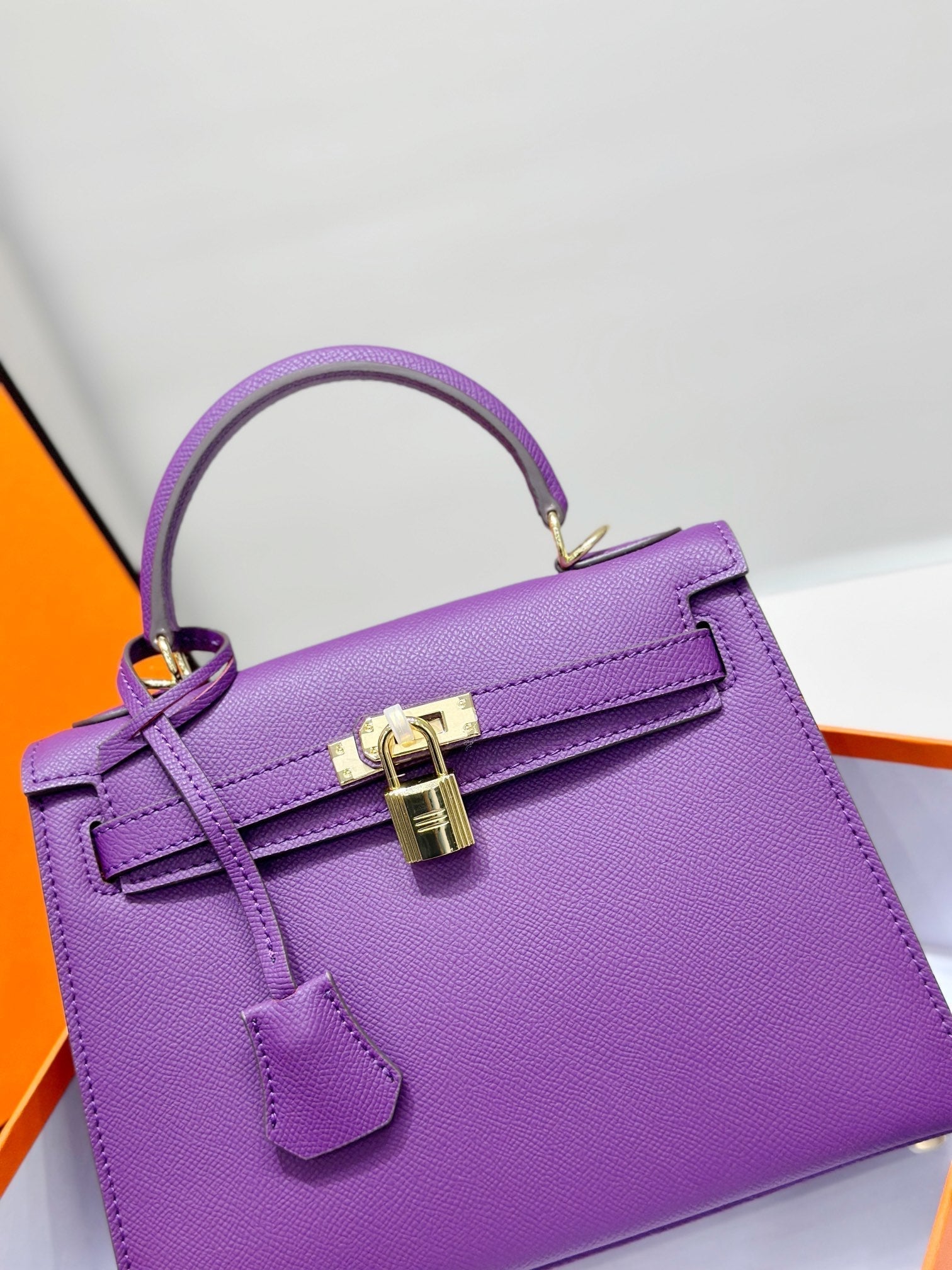 HM Kelly 25cm Purple Epsom Leather Gold Hardware