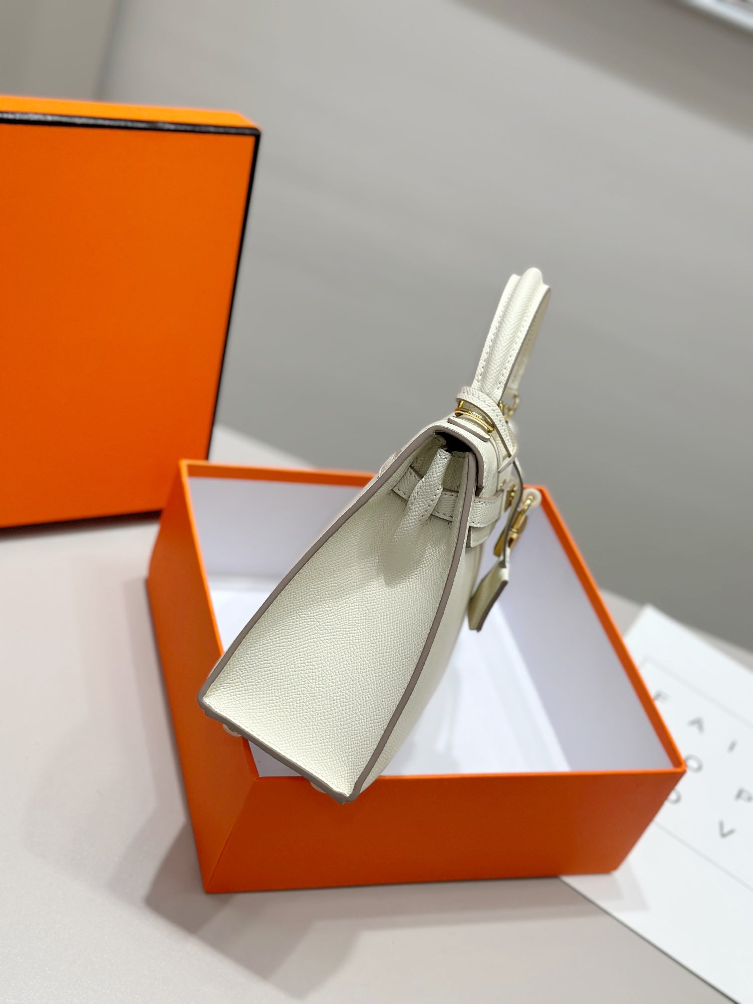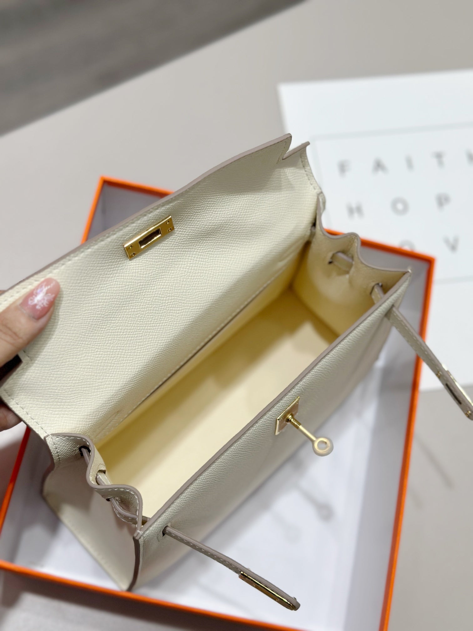 HM Kelly 25cm Cream Epsom Leather Gold Hardware