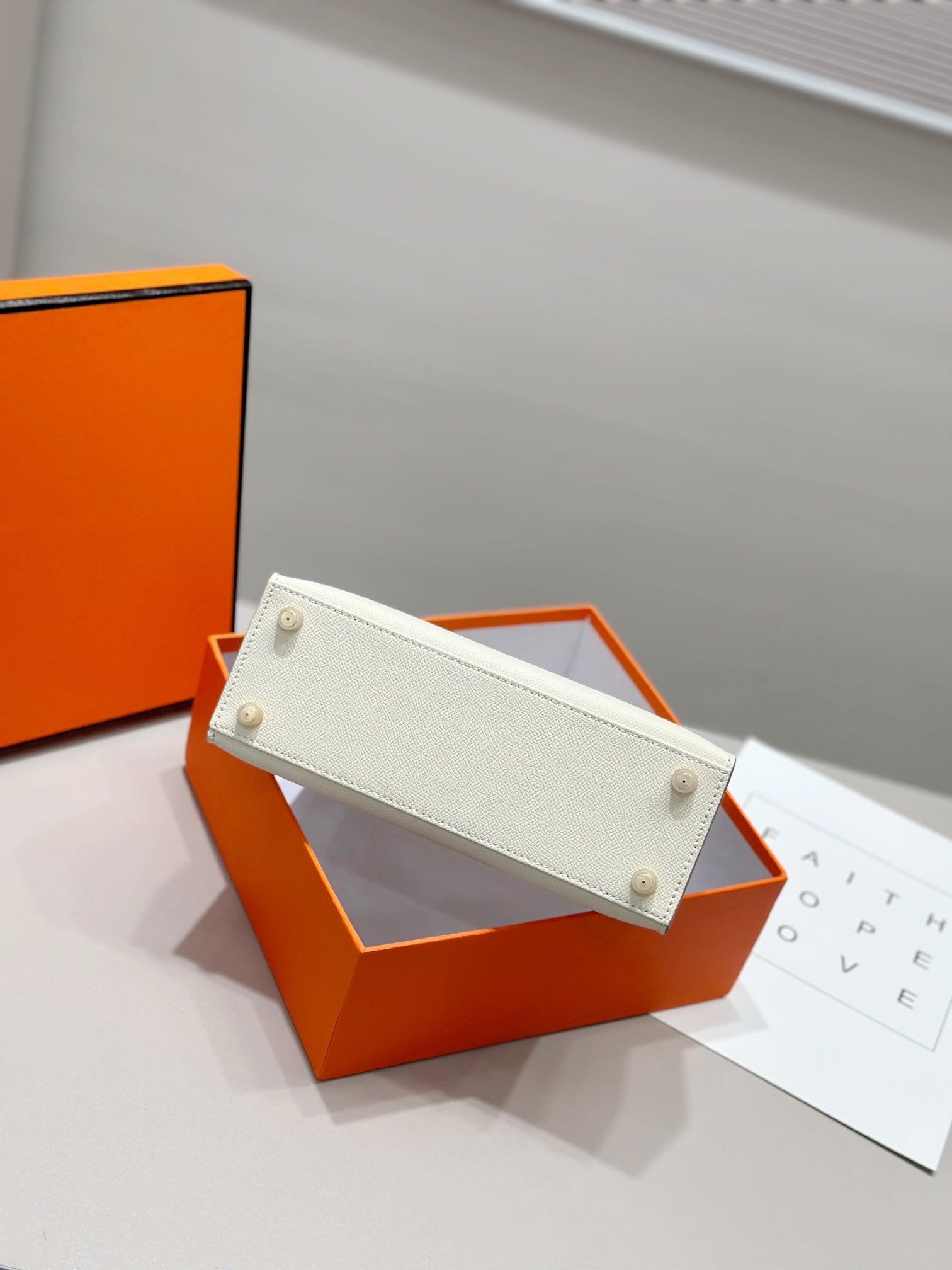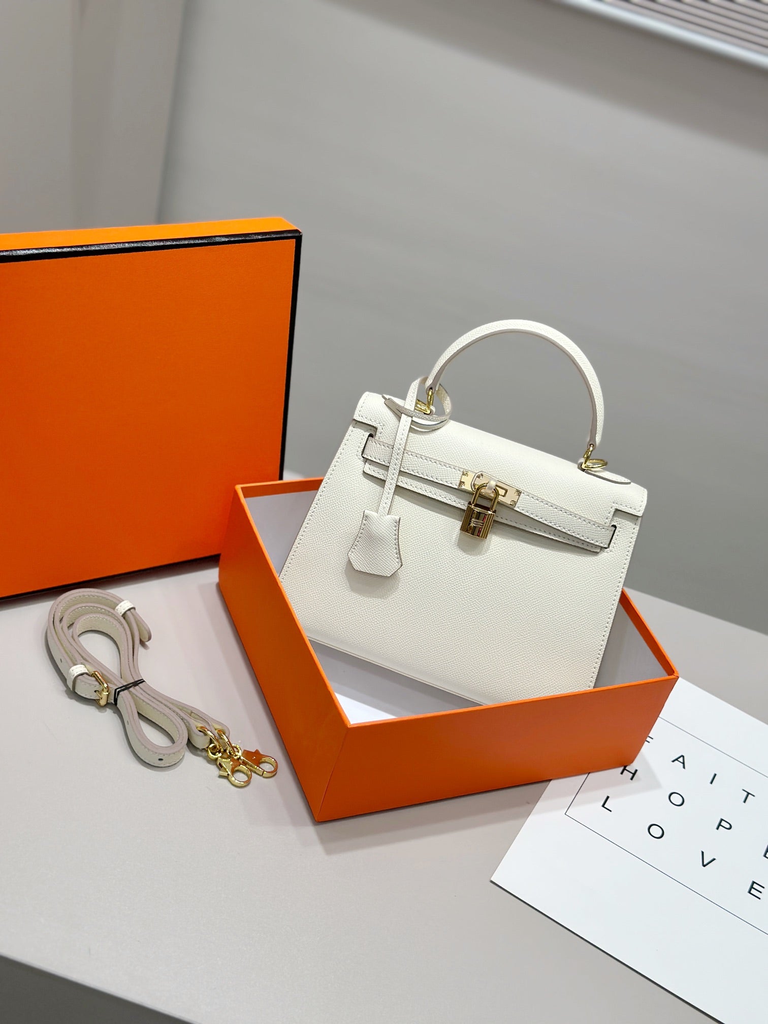 HM KELLY 25CM WHITE EPSOM LEATHER GOLD HARDWARE