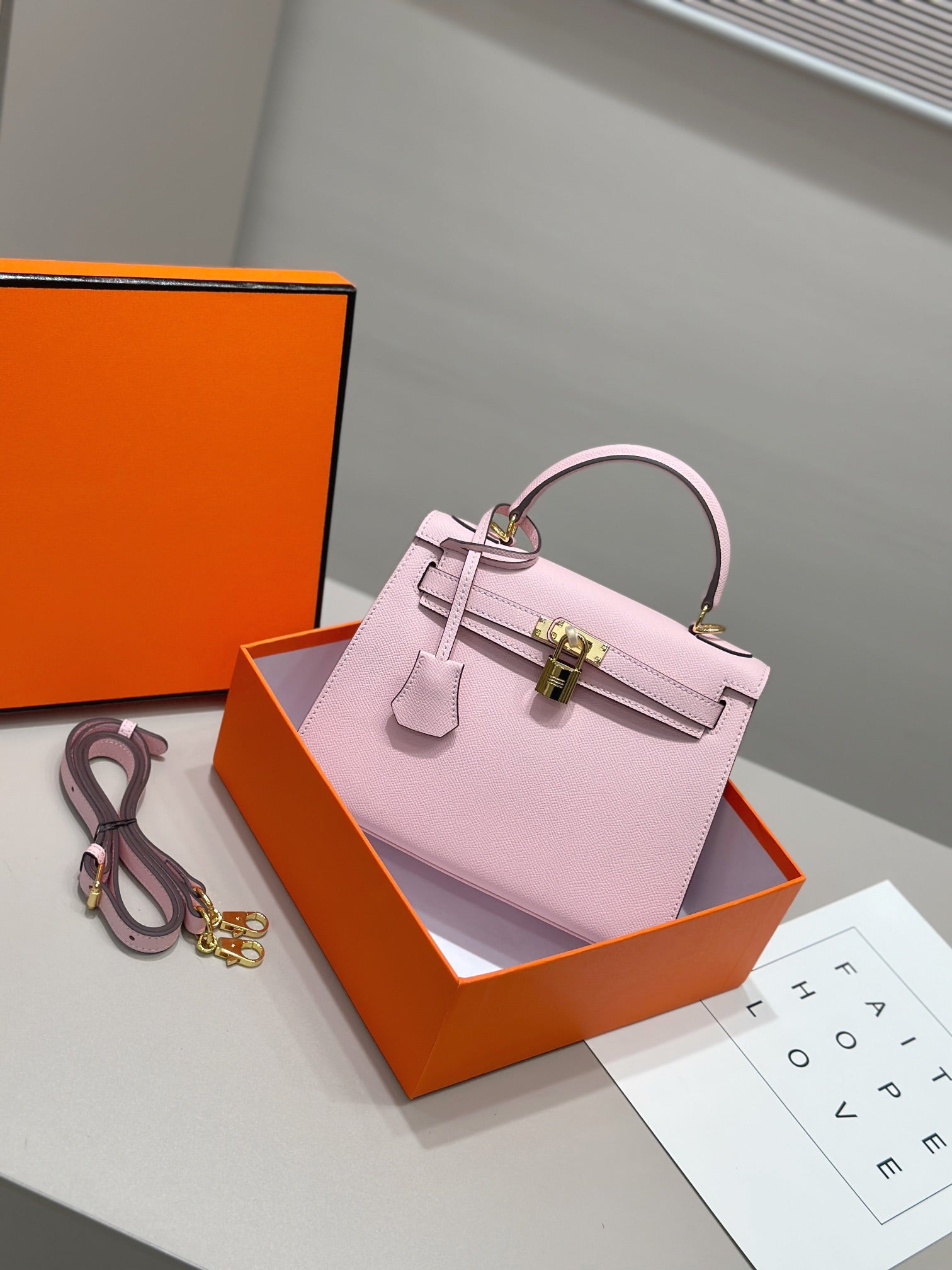 HM Kelly 25cm Light Pink Epsom Leather Gold Hardware