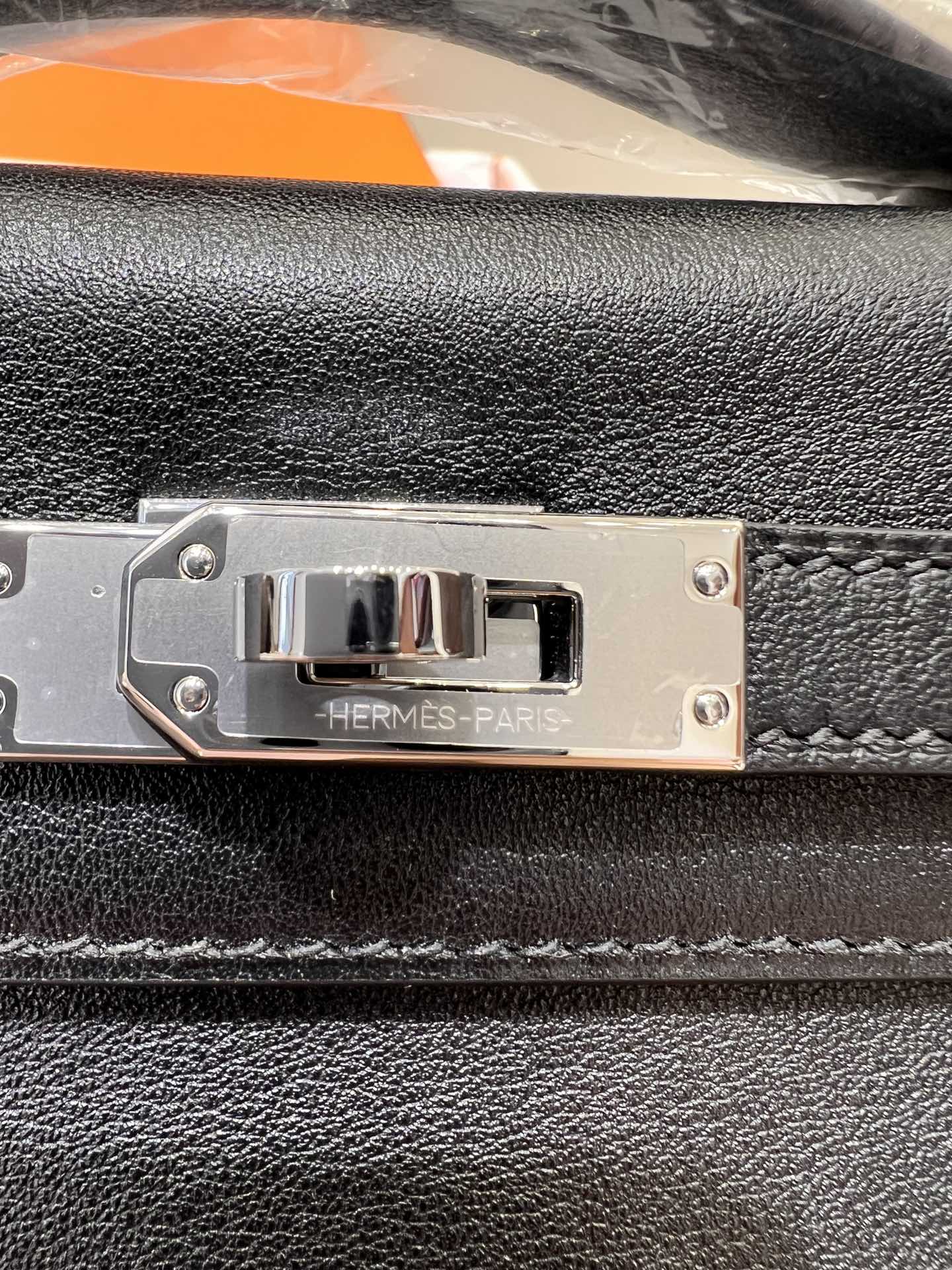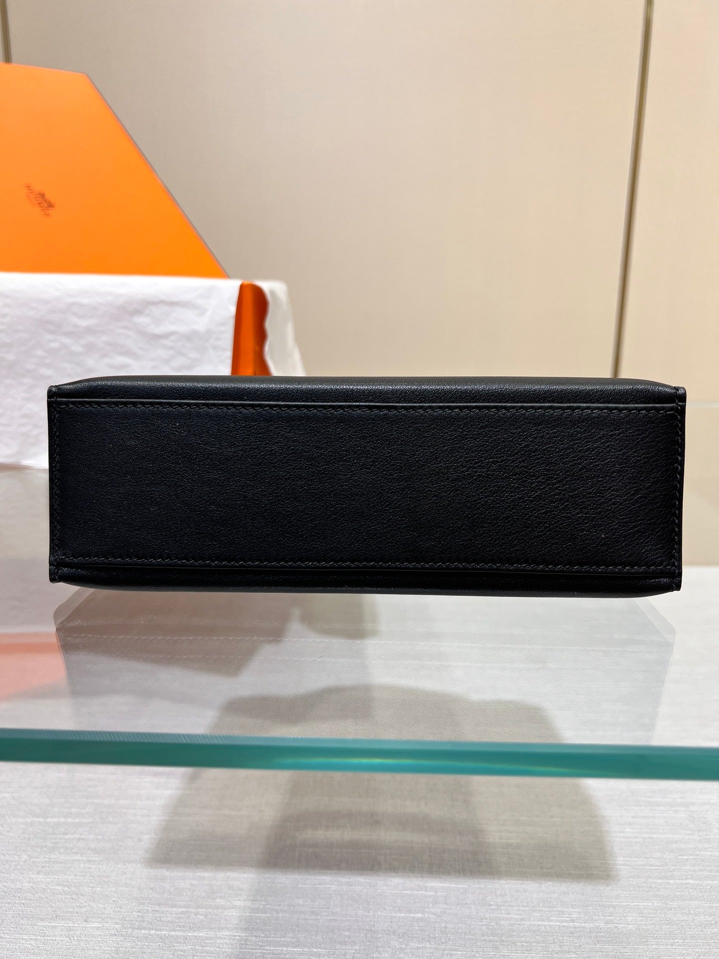 HM KELLY POCHETTE 22CM BLACK SWIFT SILVER HARDWARE