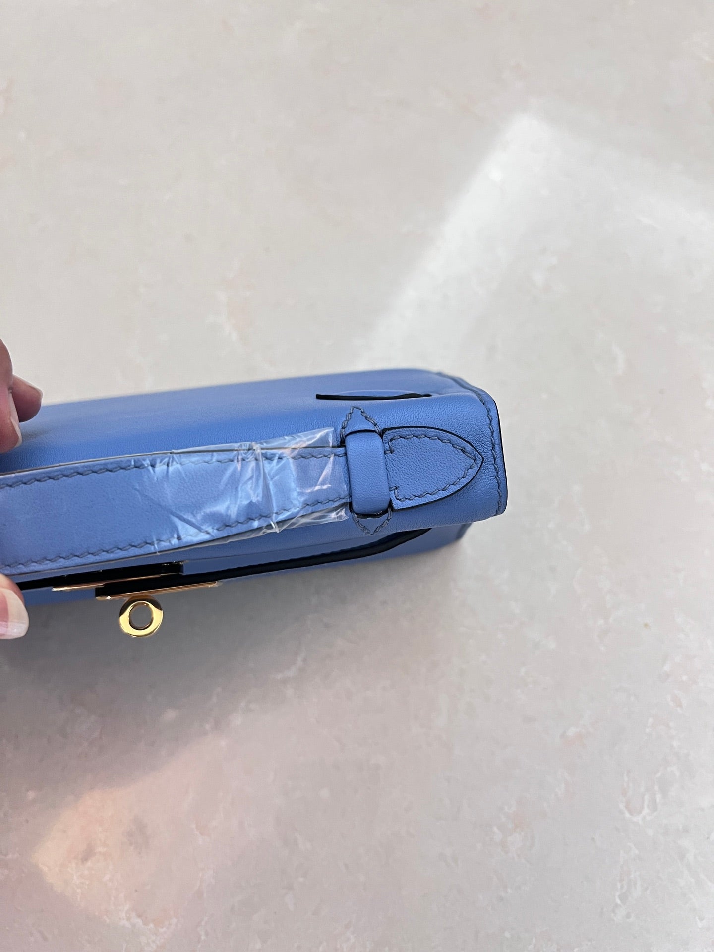 HM KELLY POCHETTE 22CM LIGHT BLUE SWIFT GOLD HARDWARE