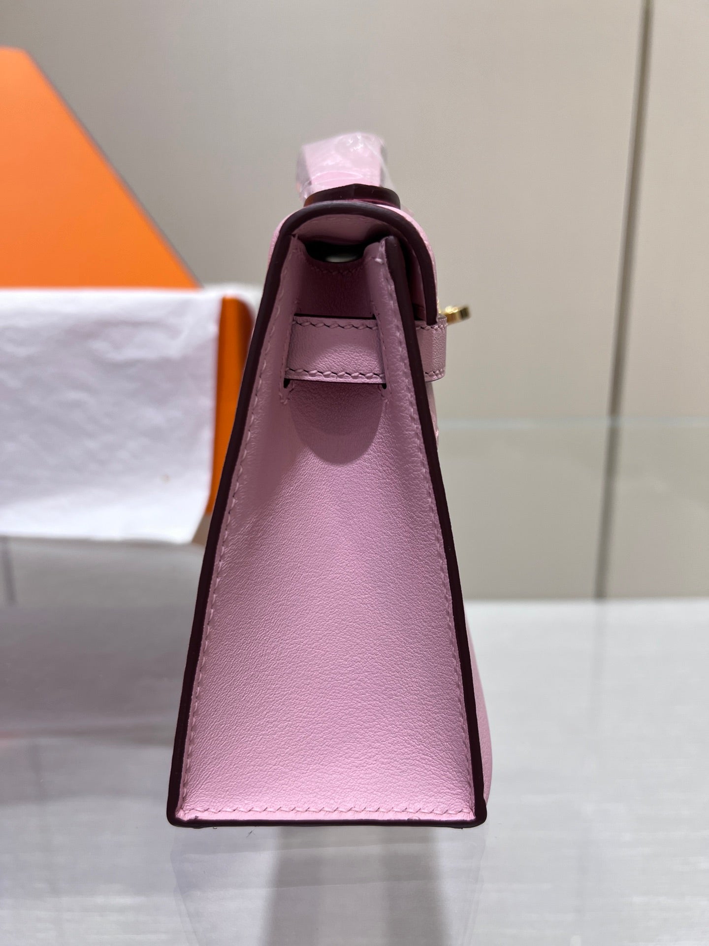HM KELLY POCHETTE 22CM PINK SWIFT GOLD HARDWARE