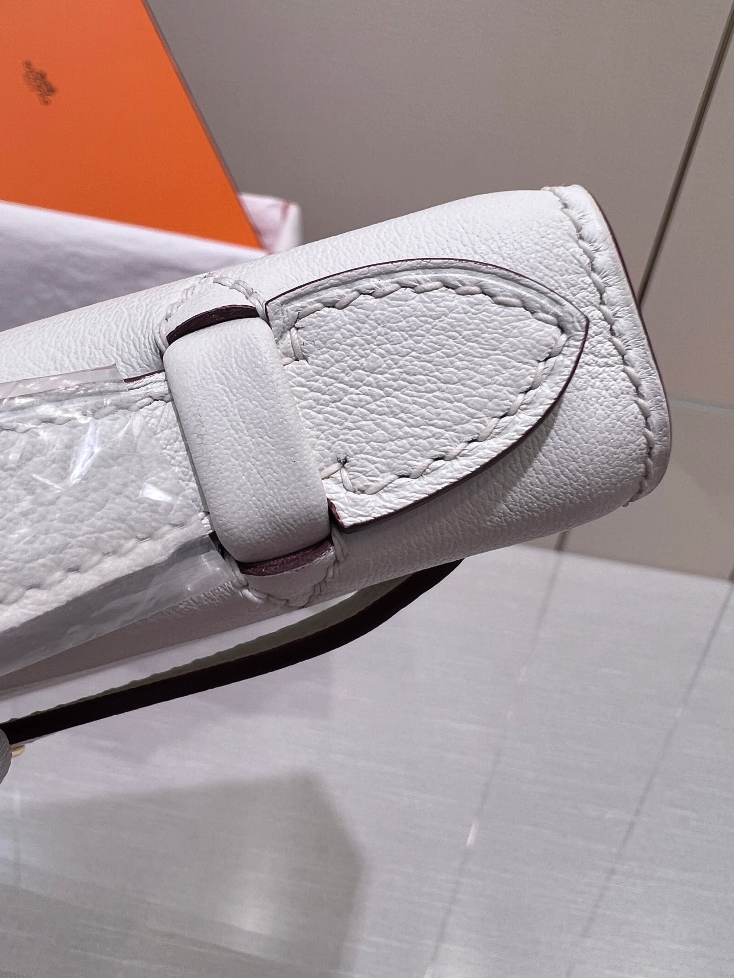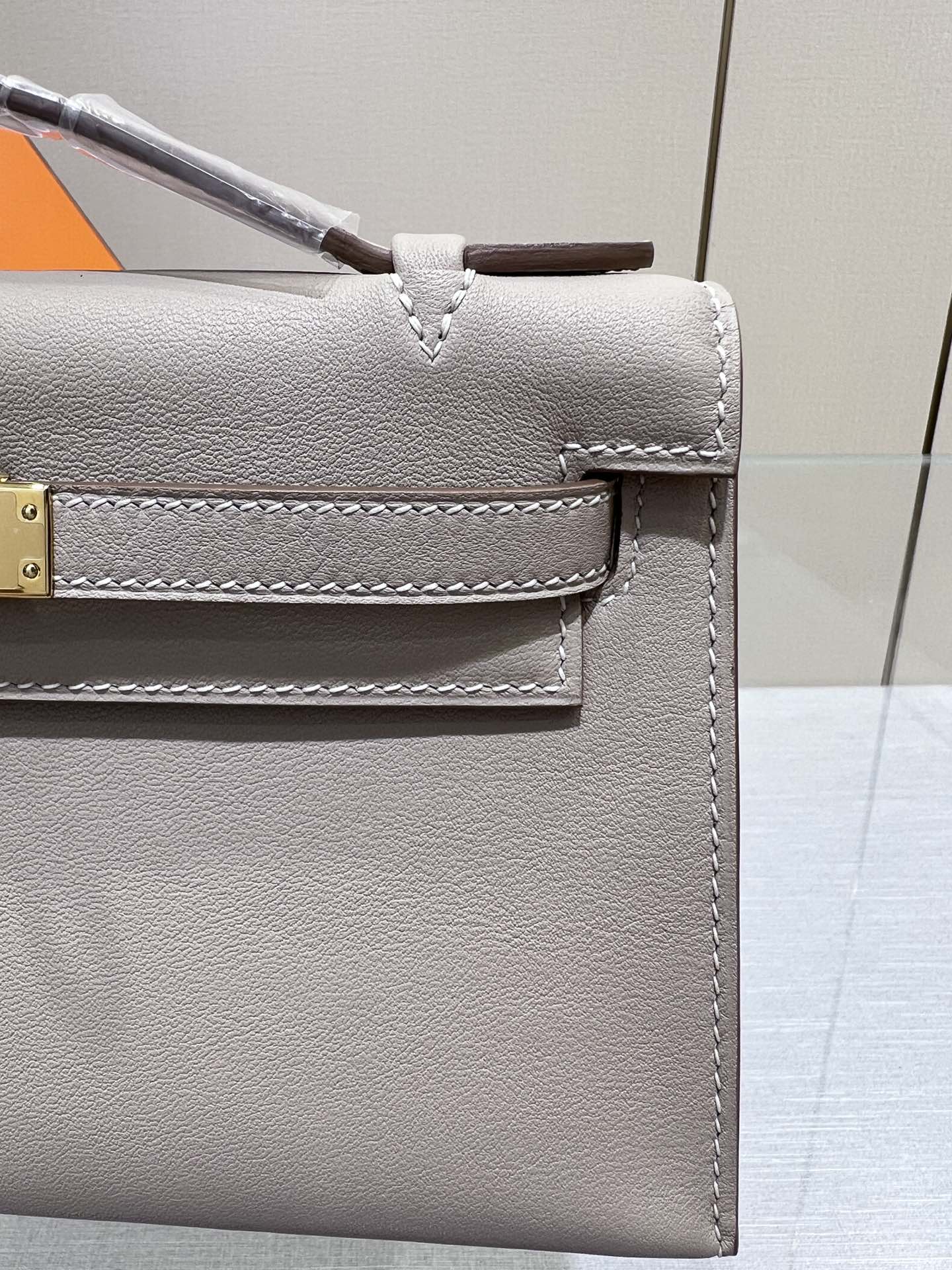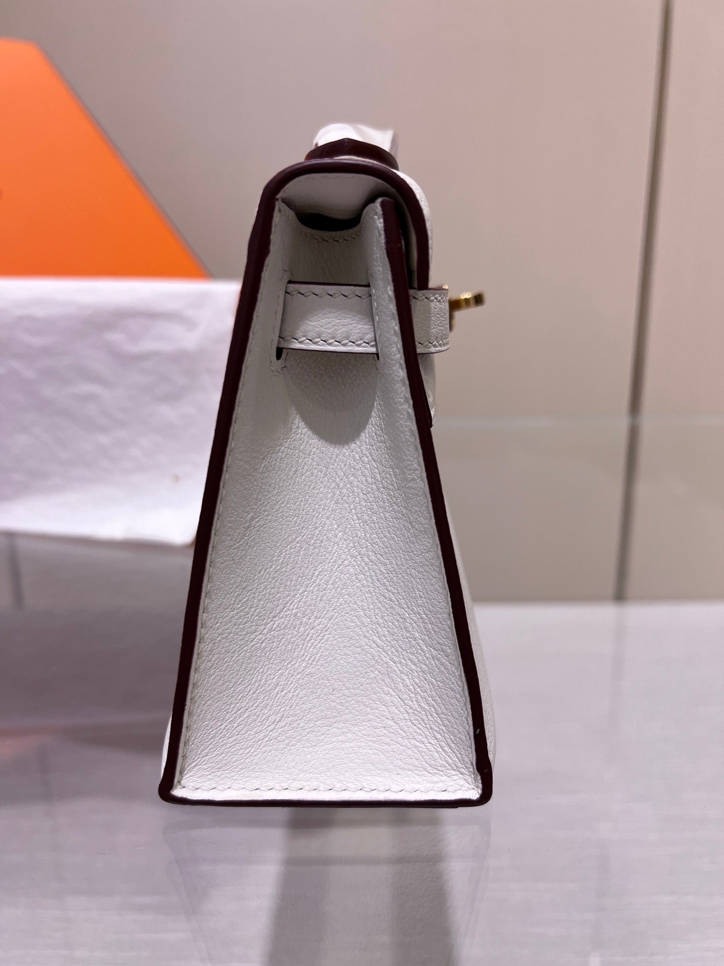 HM KELLY POCHETTE 22CM WHITE BEIGE SWIFT GOLD HARDWARE