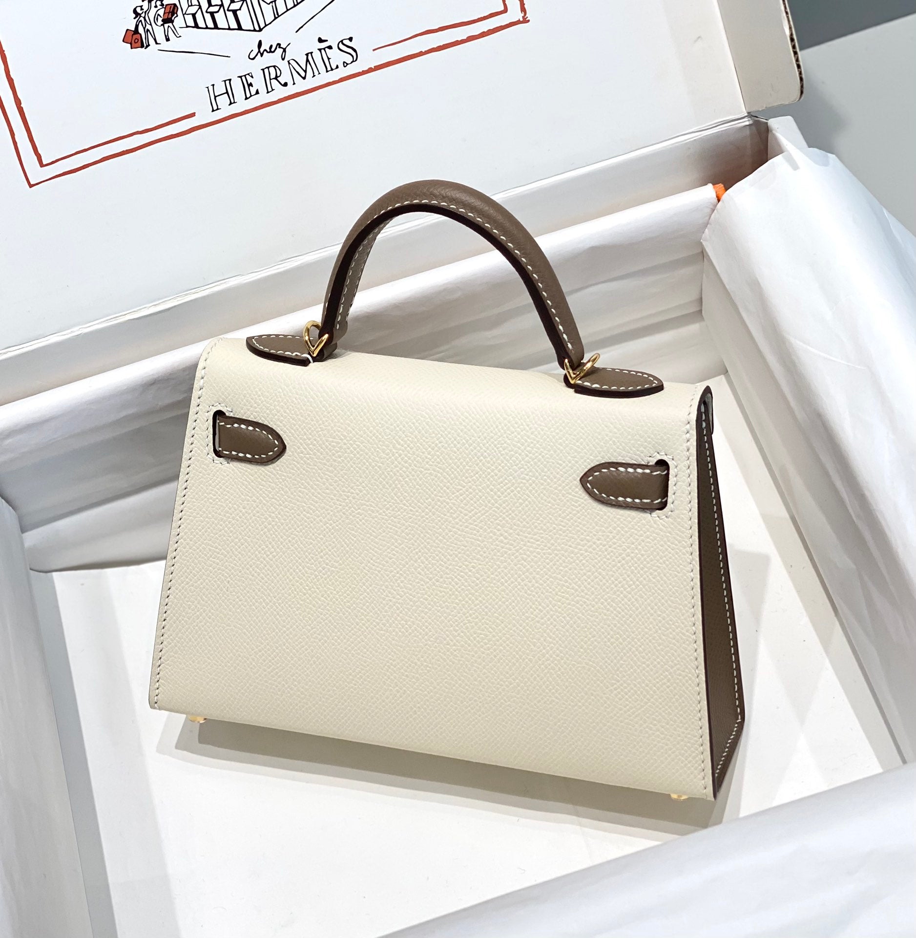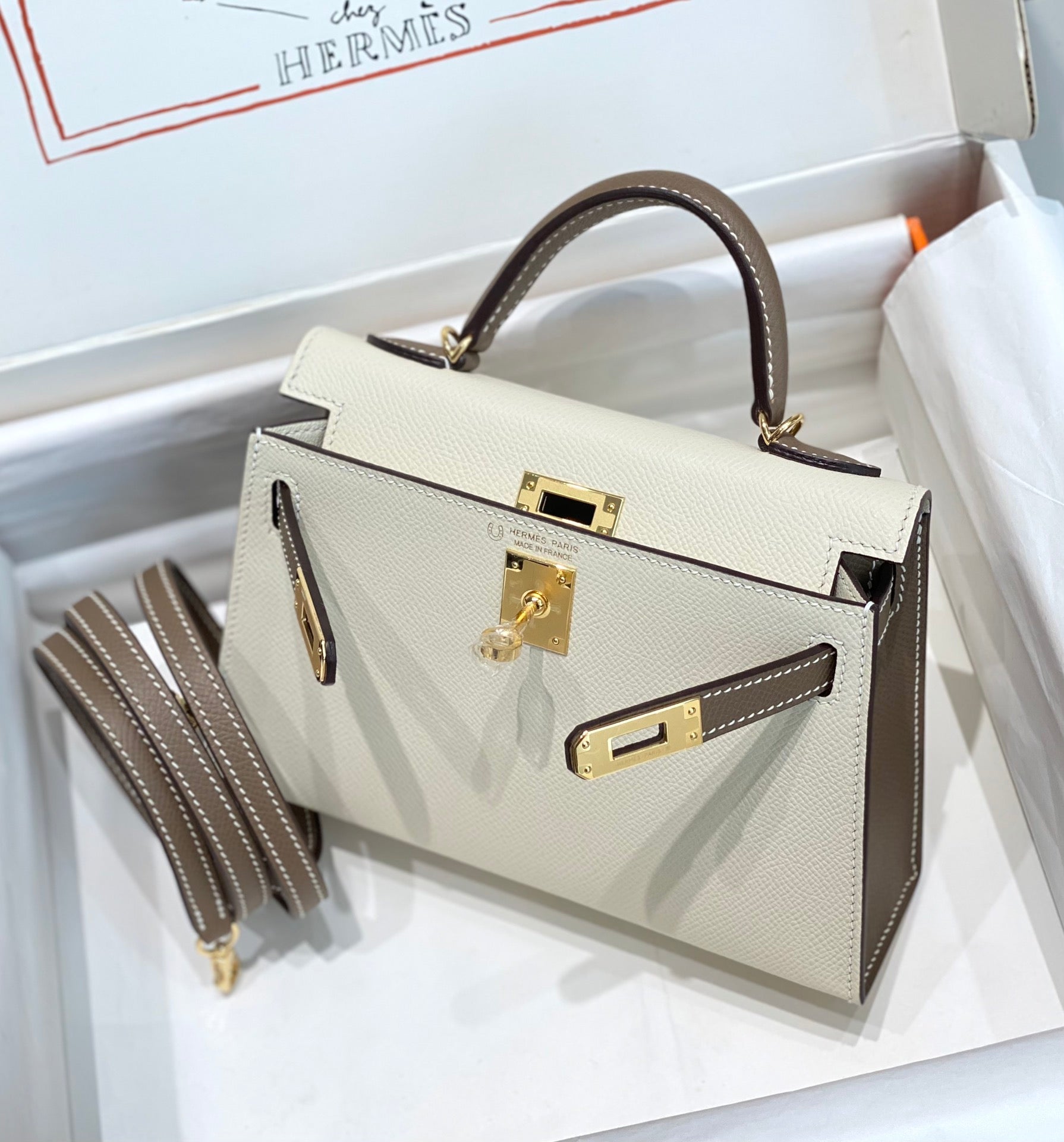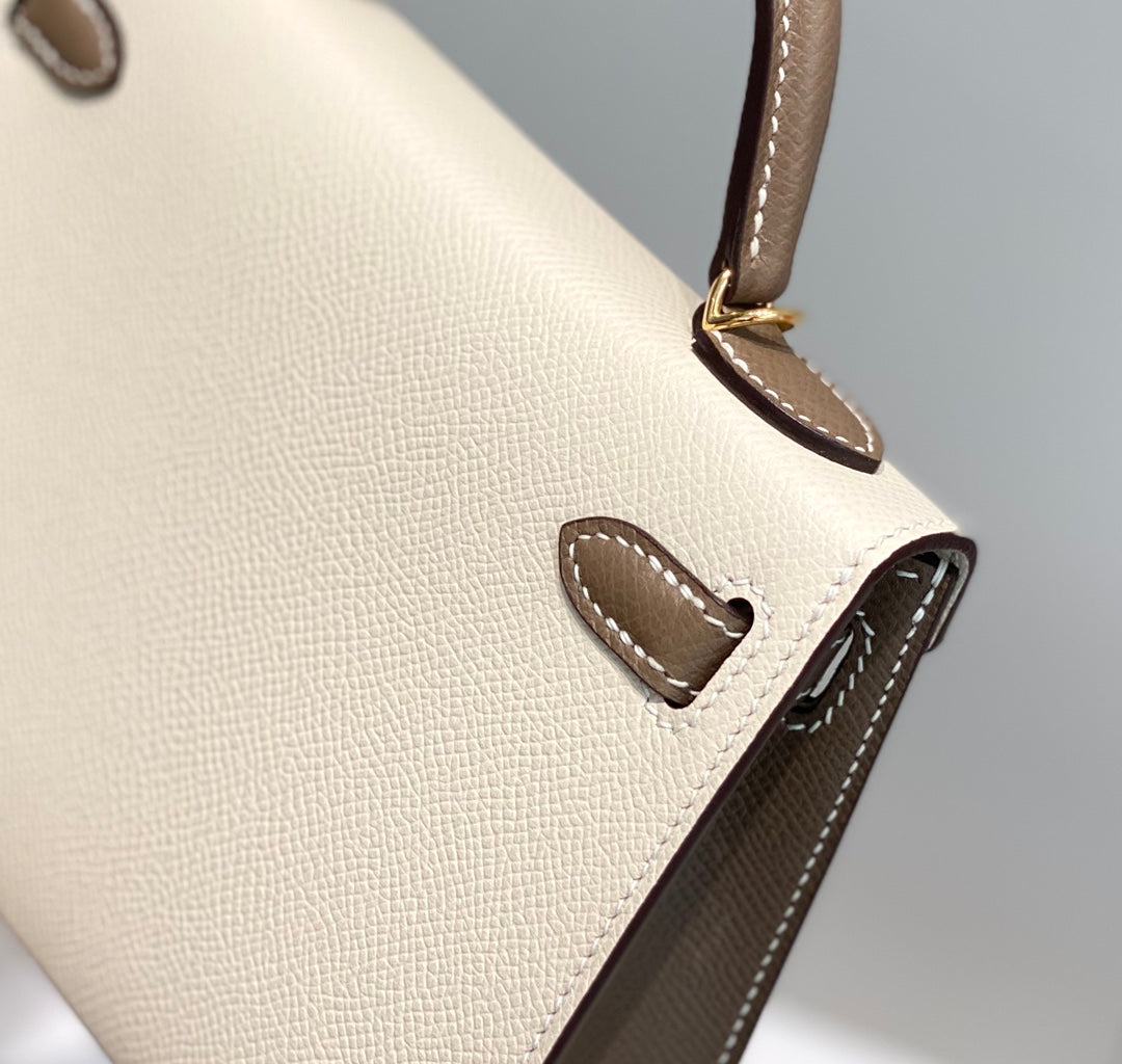 HM Mini Kelly 19cm Cream Etoupe Epsom Gold Hardware
