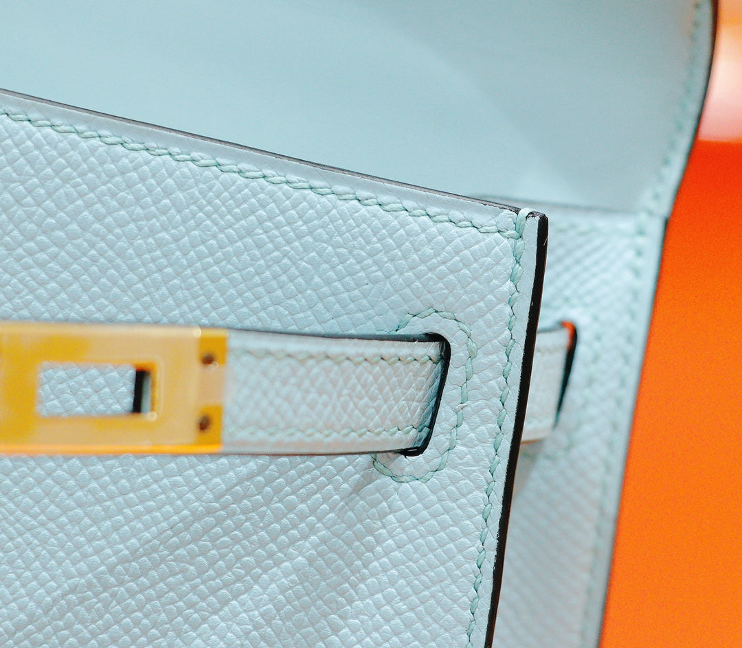 HM Mini Kelly 19cm Cream Cloud Blue Epsom Silver Hardware