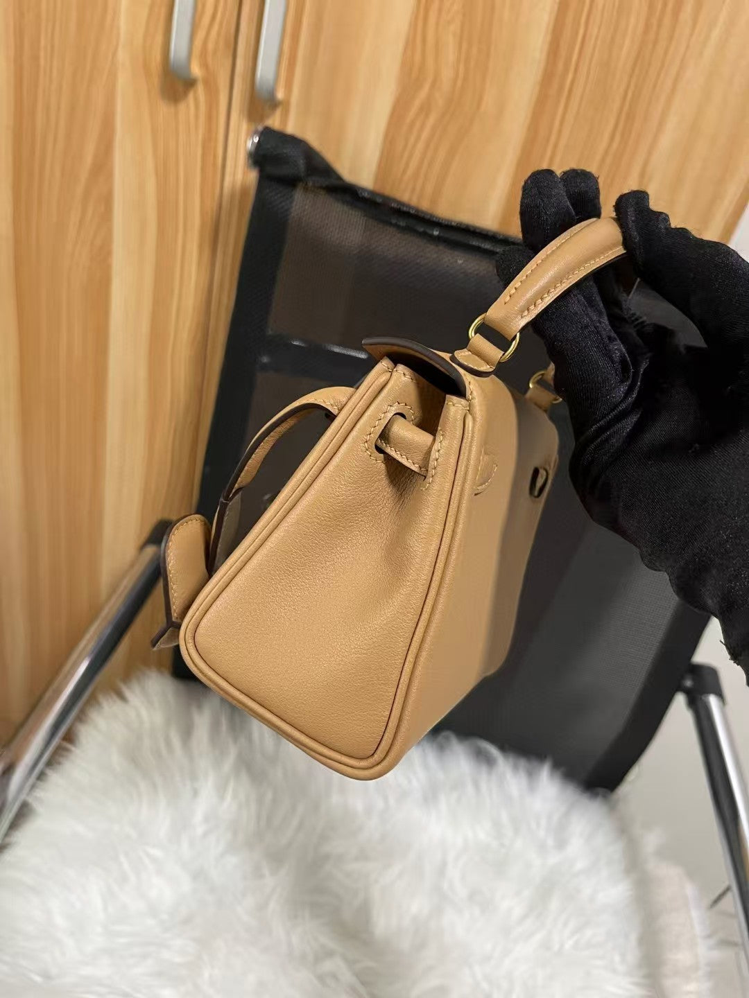 HM Kelly Teddy Plush Shearling Brown Suede Palladium Hardware (Need 30 days to prepare goods)