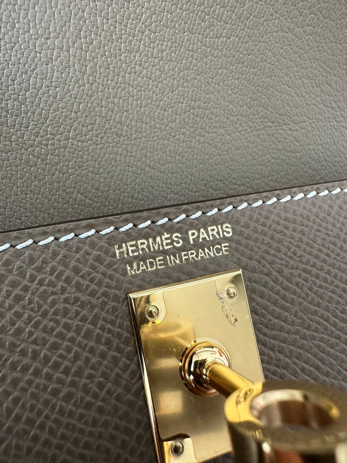 HM Kelly Desordre 20cm Etoupe Grey Epsom Gold Hardware