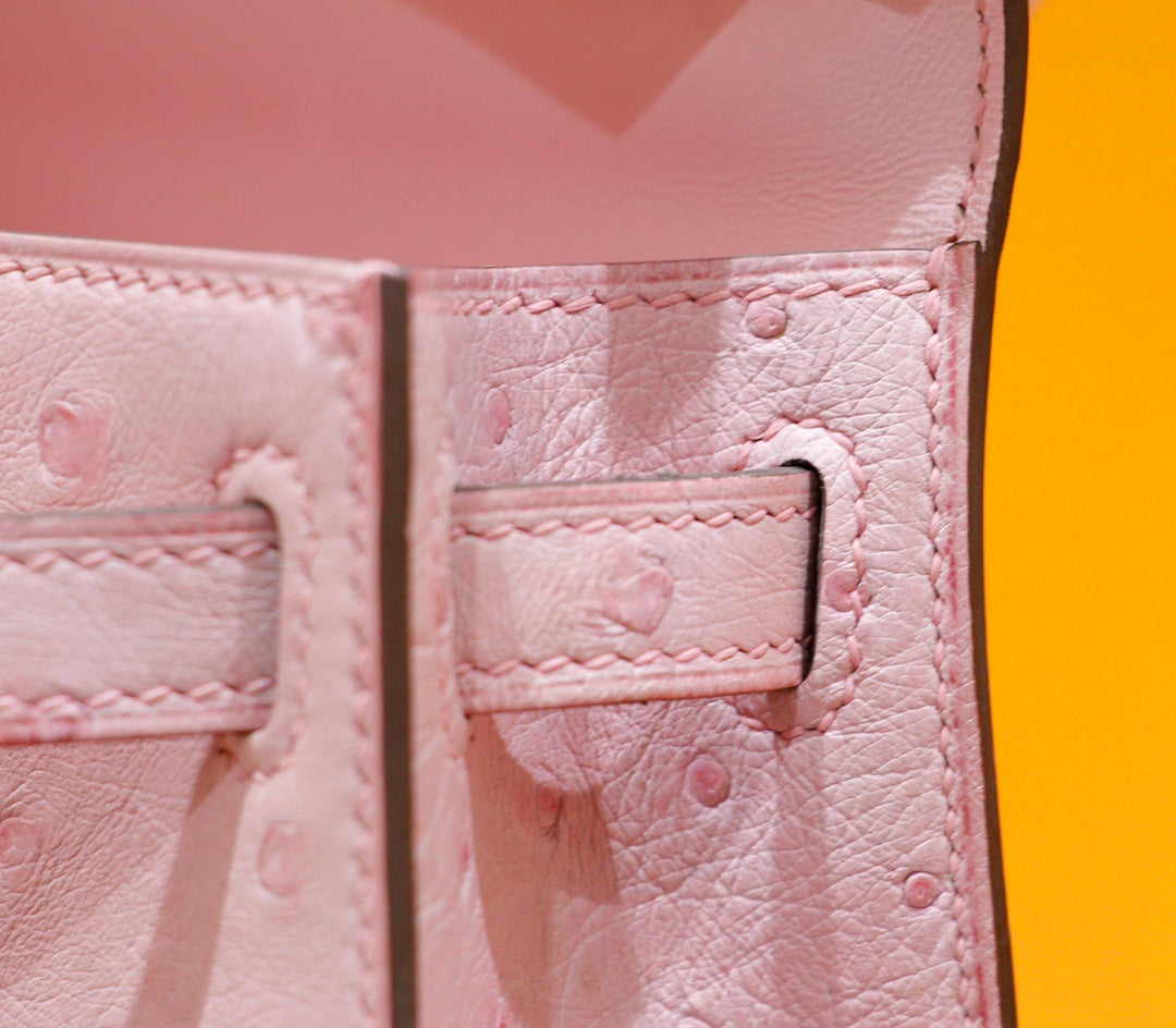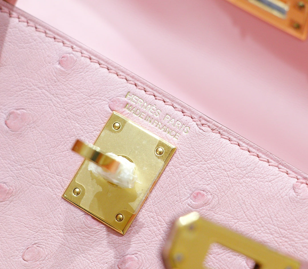 HM Mini Kelly 19cm Pink Ostrich Gold Hardware