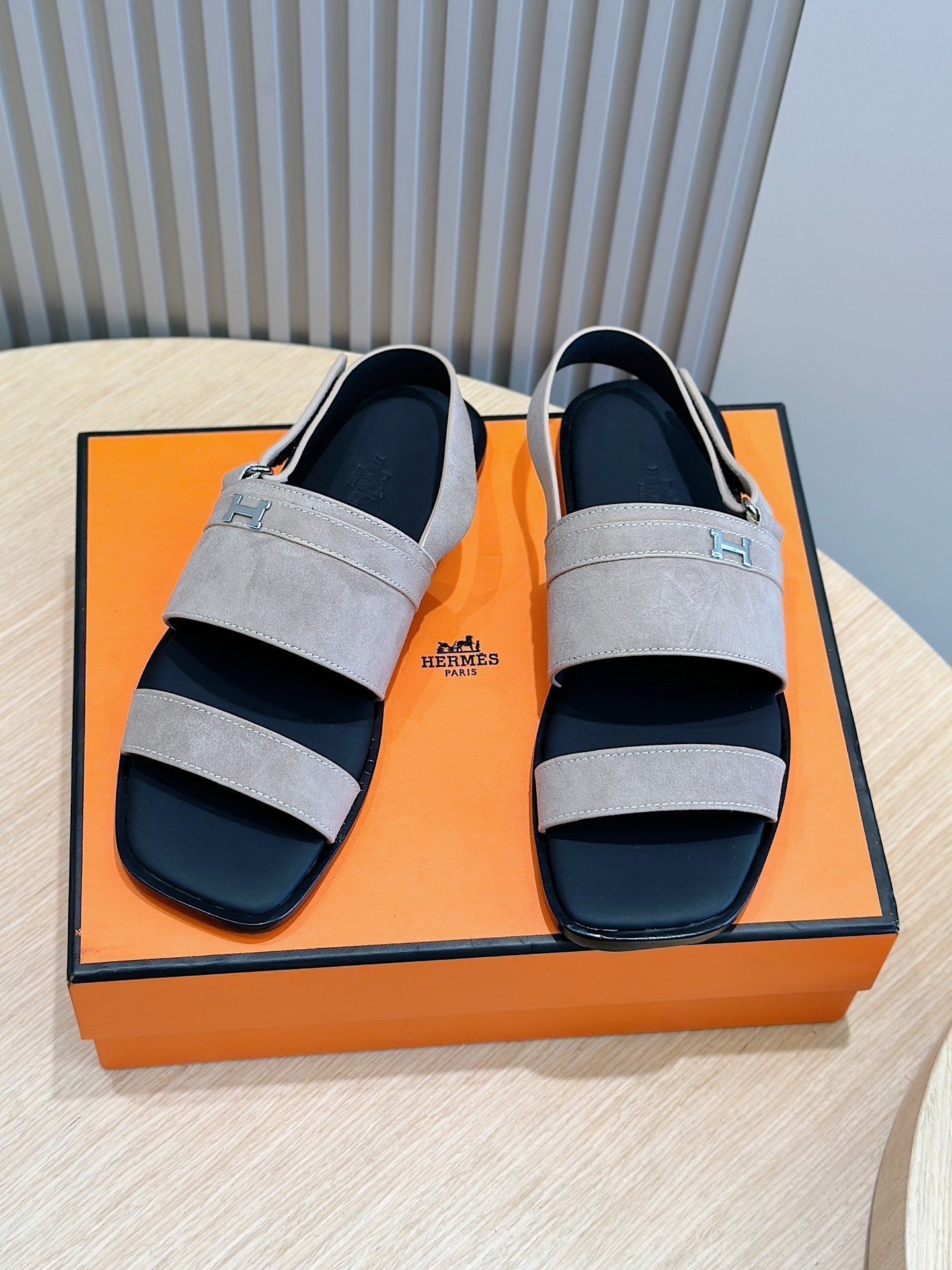 HM HENRIO FLAT SANDAL LIGHT GRAY SUEDE