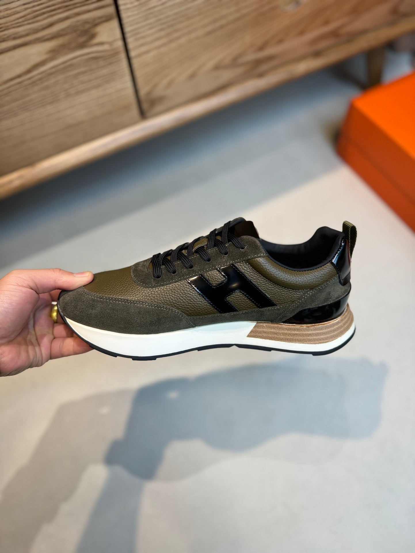 HM INTERACTIVE LACE-UP SNEAKER OLIVE CALFSKIN