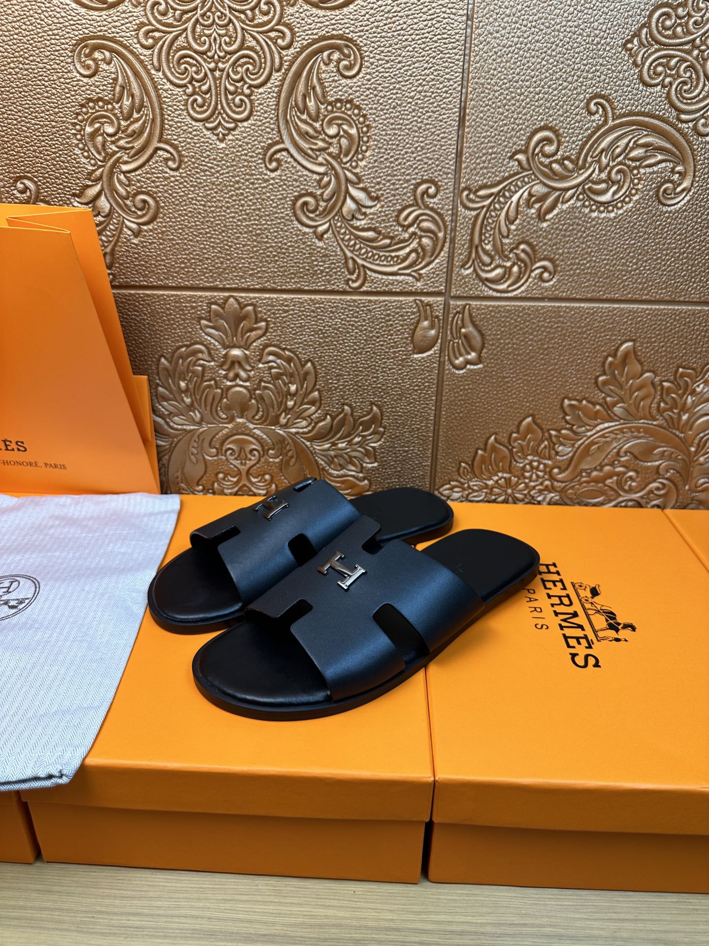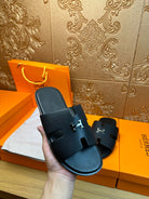 HM IZMIR H-BUCKLE SANDAL BLACK CALFSKIN