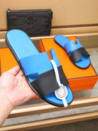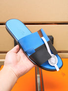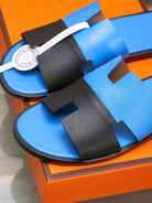 HM IZMIR SANDAL COBALT AND BLACK LAMBSKIN