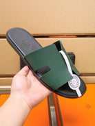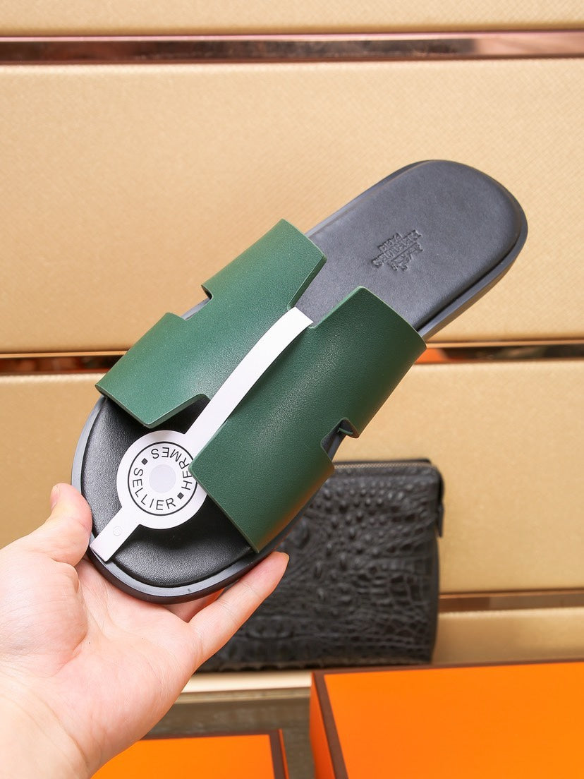 HM IZMIR SANDAL DARK GREEN AND BLACK CALFSKIN