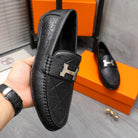 HM SQUARE MOTIF LOAFER BLACK EMBOSSED CALFSKIN