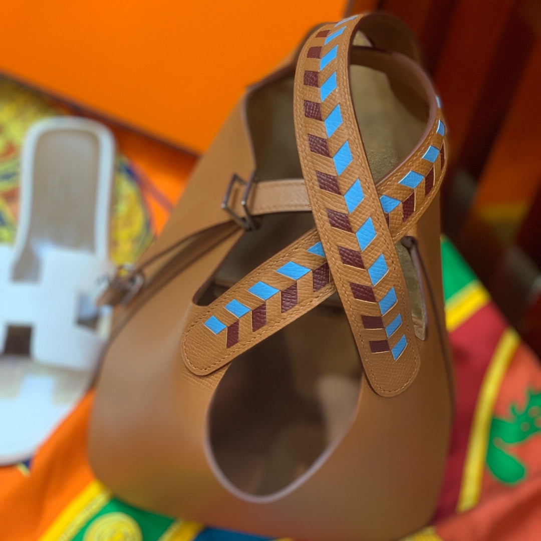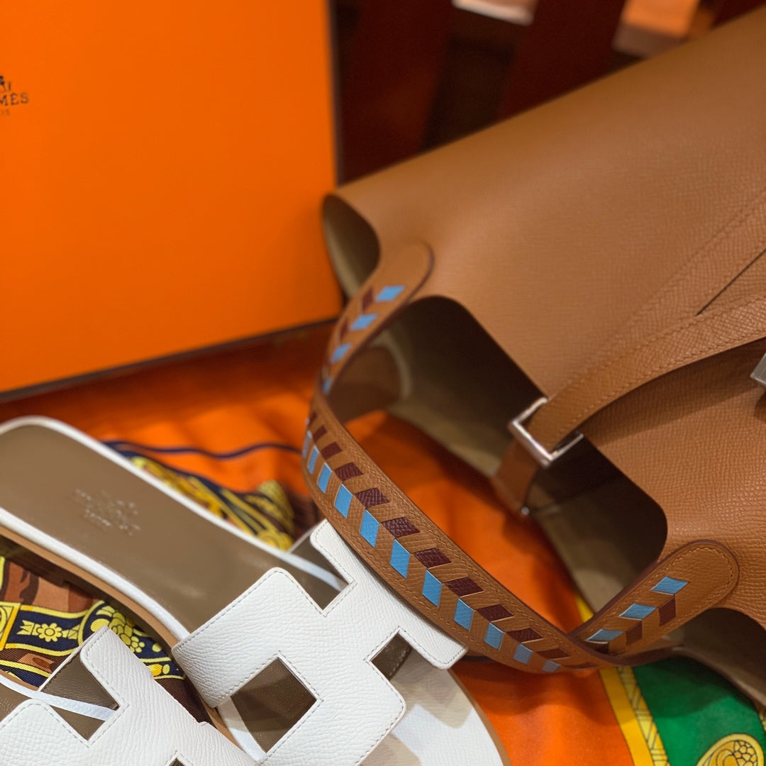 HM PICOTIN LOCK 22 ORANGE AND ASH BROWN TOGO LEATHER