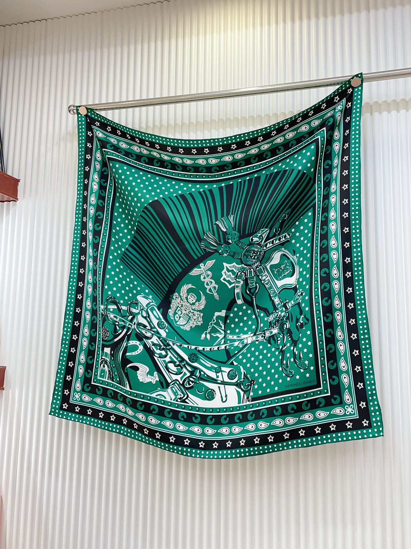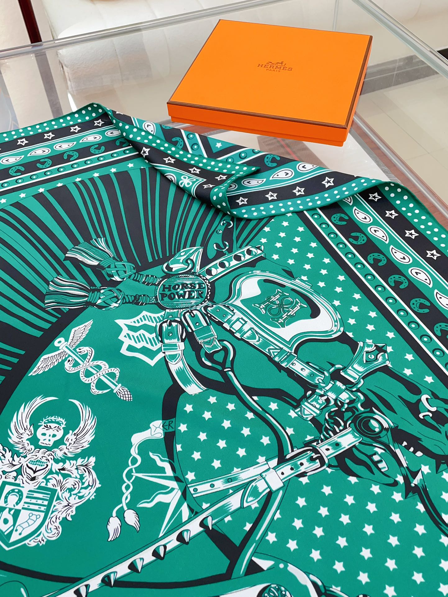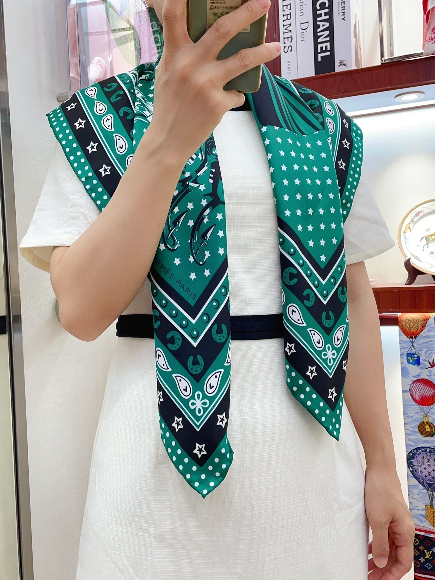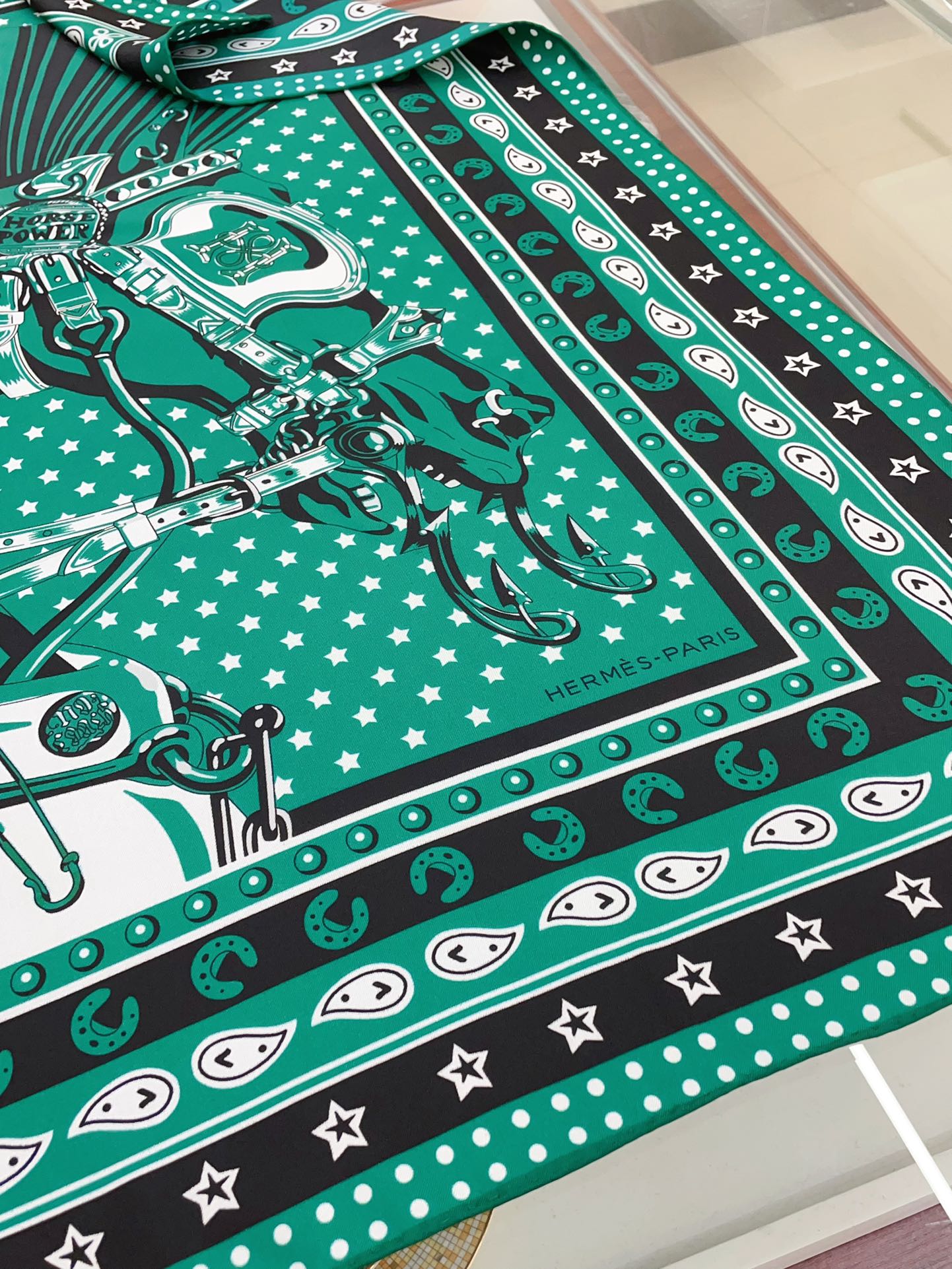 Cheval Punk Bandana Scarf 90 CM In Deep Green Mix White Black Silk Twill 309212