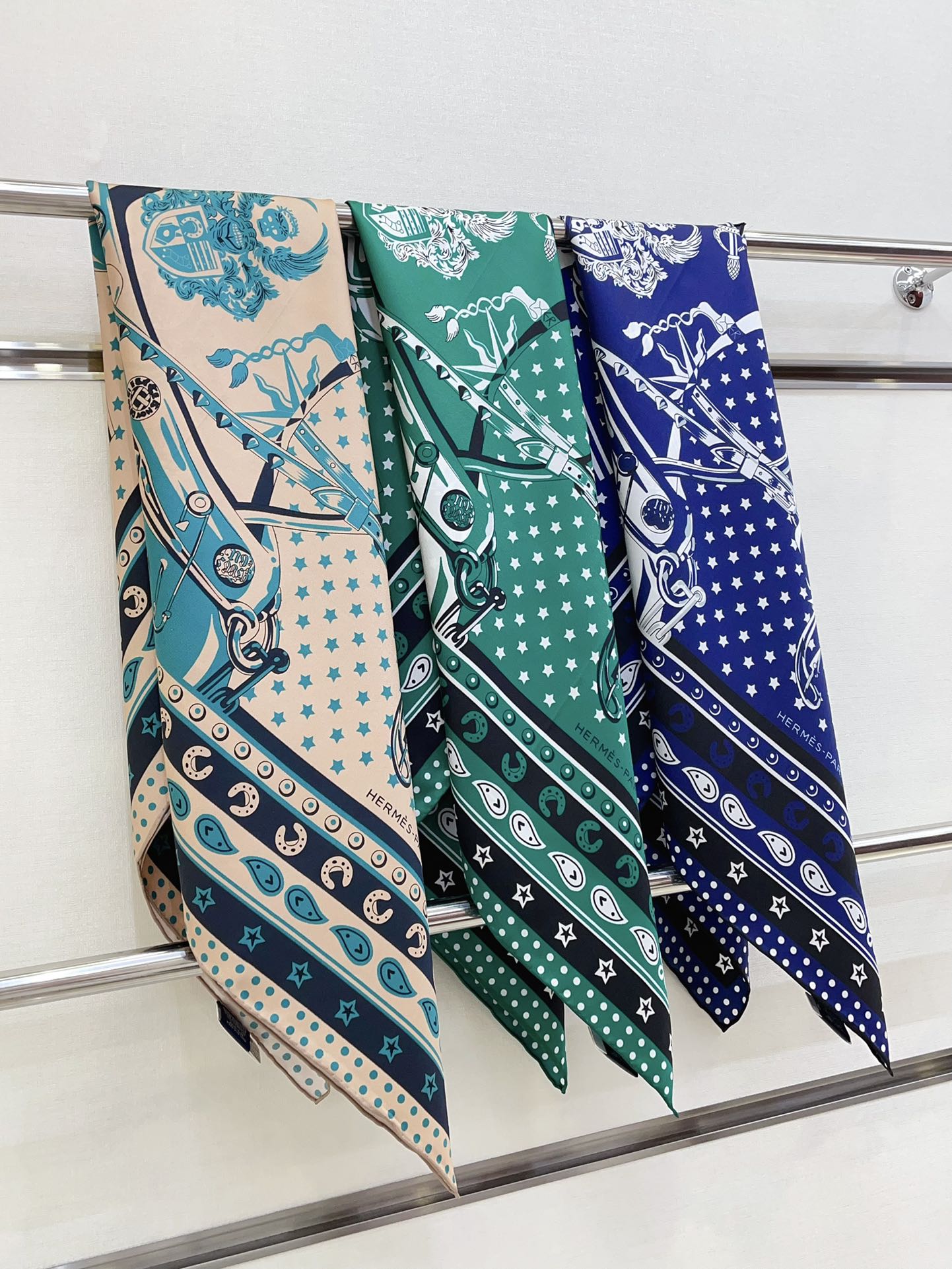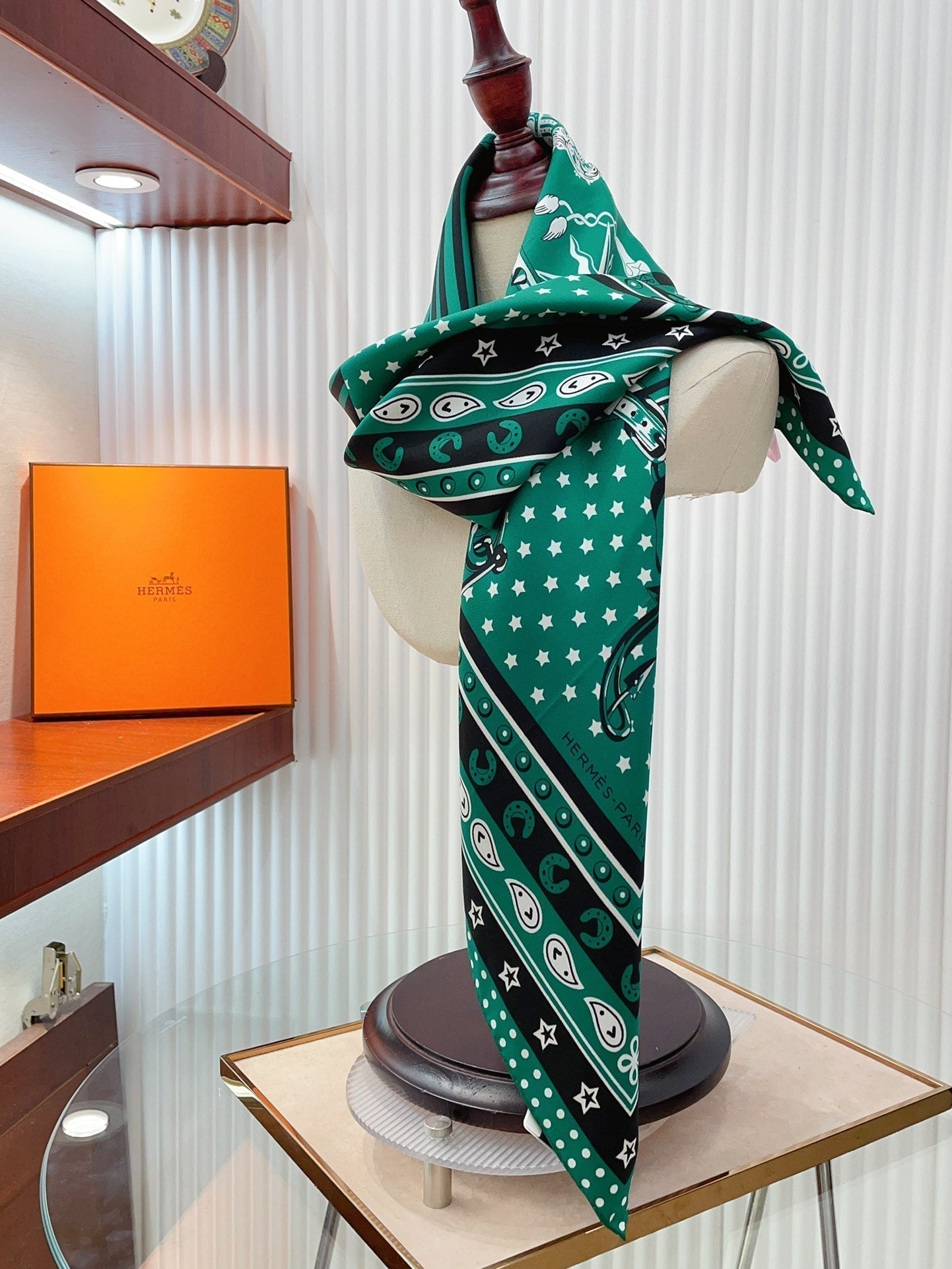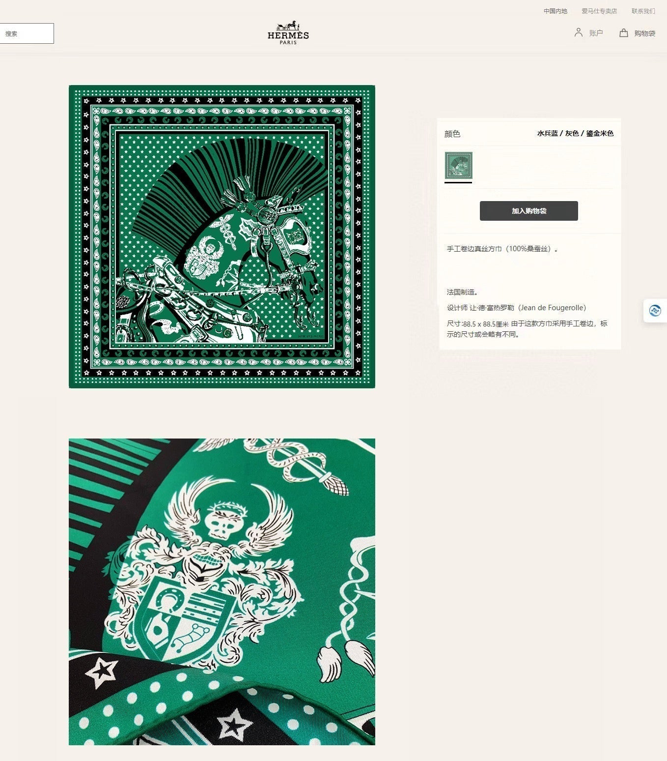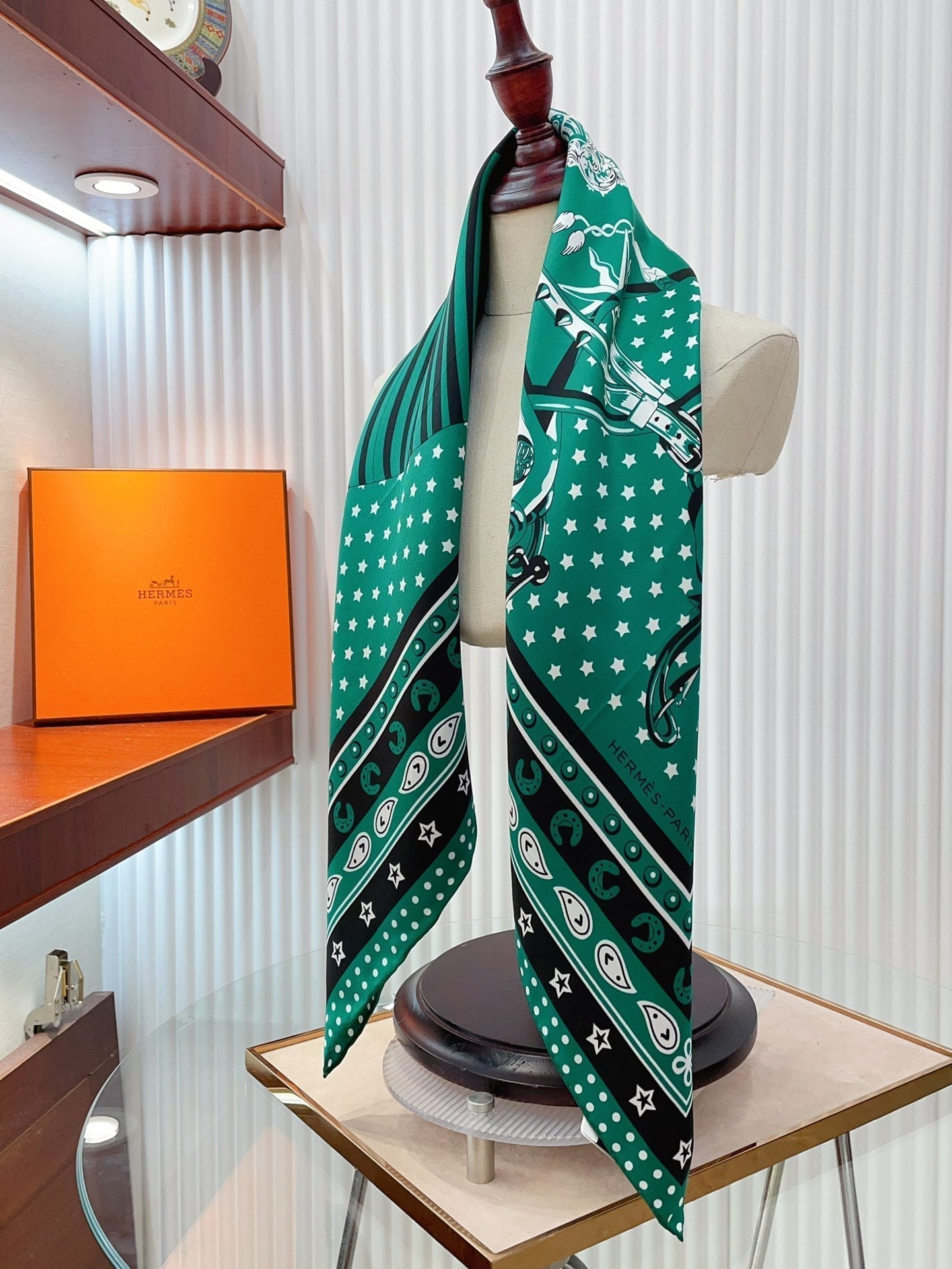 Cheval Punk Bandana Scarf 90 CM In Deep Green Mix White Black Silk Twill 309212