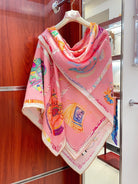 Chevaloscope Scarf 140 CM In Pink Colorful Cashmere And Silk 373660