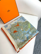 Retour A La Nature Shawl 135CM In Light Blue Colorful Cashmere And Silk