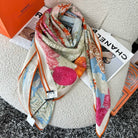 Retour A La Nature Shawl 140 CM Green Gray Colorful Silk