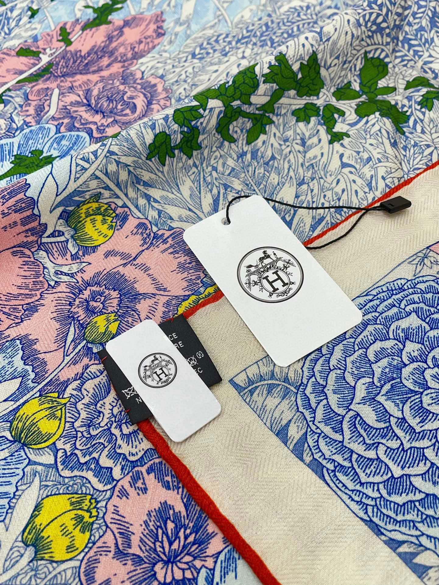 Retour A La Nature Shawl 140CM In Dakr Blue Colorful Cashmere And Silk
