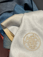 Scarf 190 CM In White Beige Mix Black Blue Cashmere